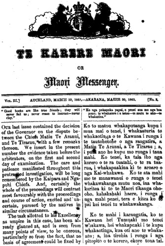 TE KARERE MAORI OR MAORI MESSENGER.