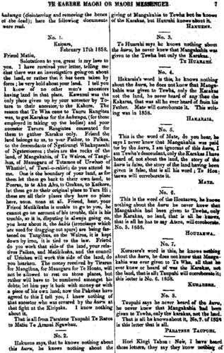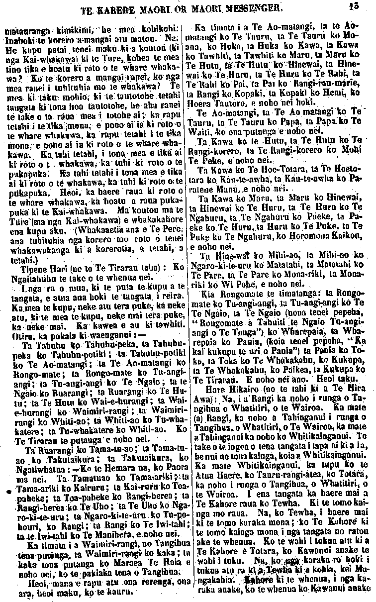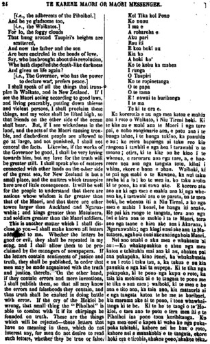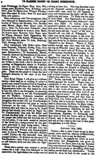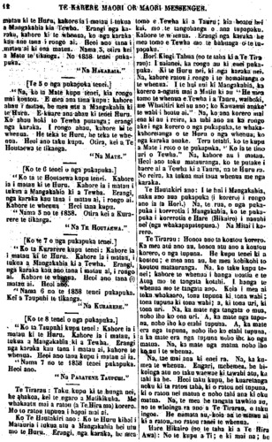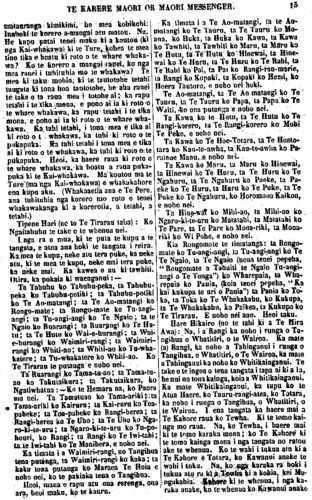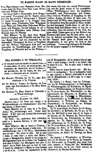TE KARERE MAORI OR MAORl MESSENGER, 13 Tipene Hari Te Tirarau Ngaitahuhu Hare Hikairo Whatitiri Tahinganui Tangihua Te Kahore Tewha