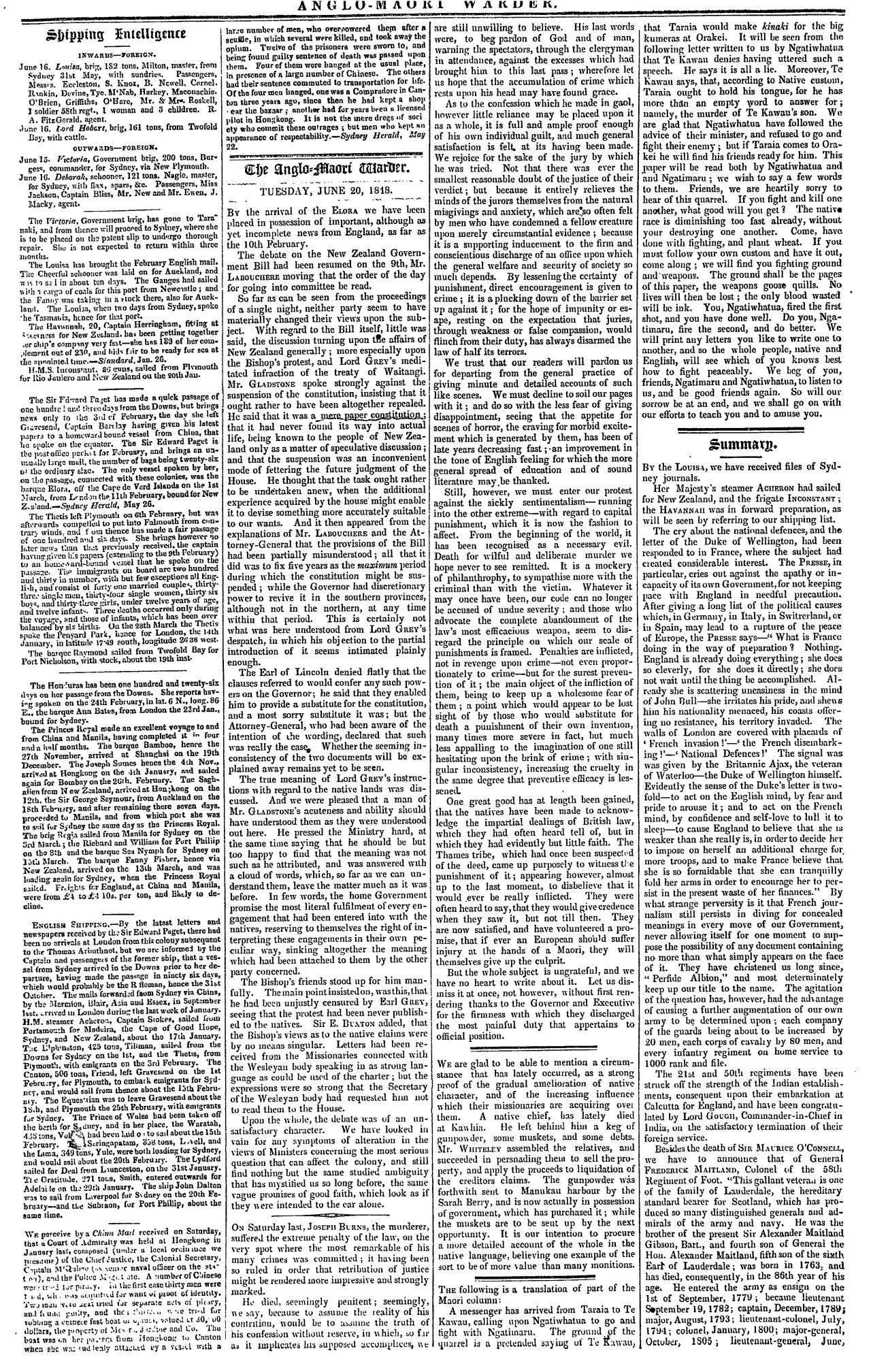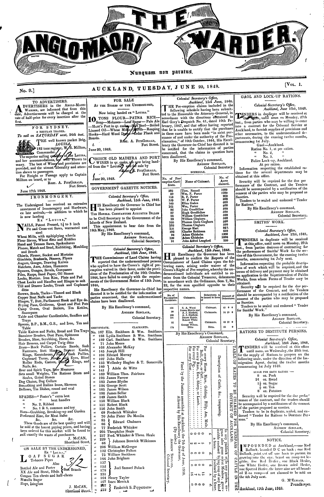 Anglo Maori Warder 1848: Volume 1, Number 9. 20 June 1848 |