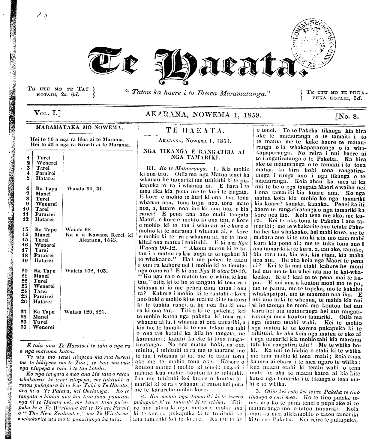 Te Haeata 1859-1862: Volume 1, Number 8. 01 November 1859 |