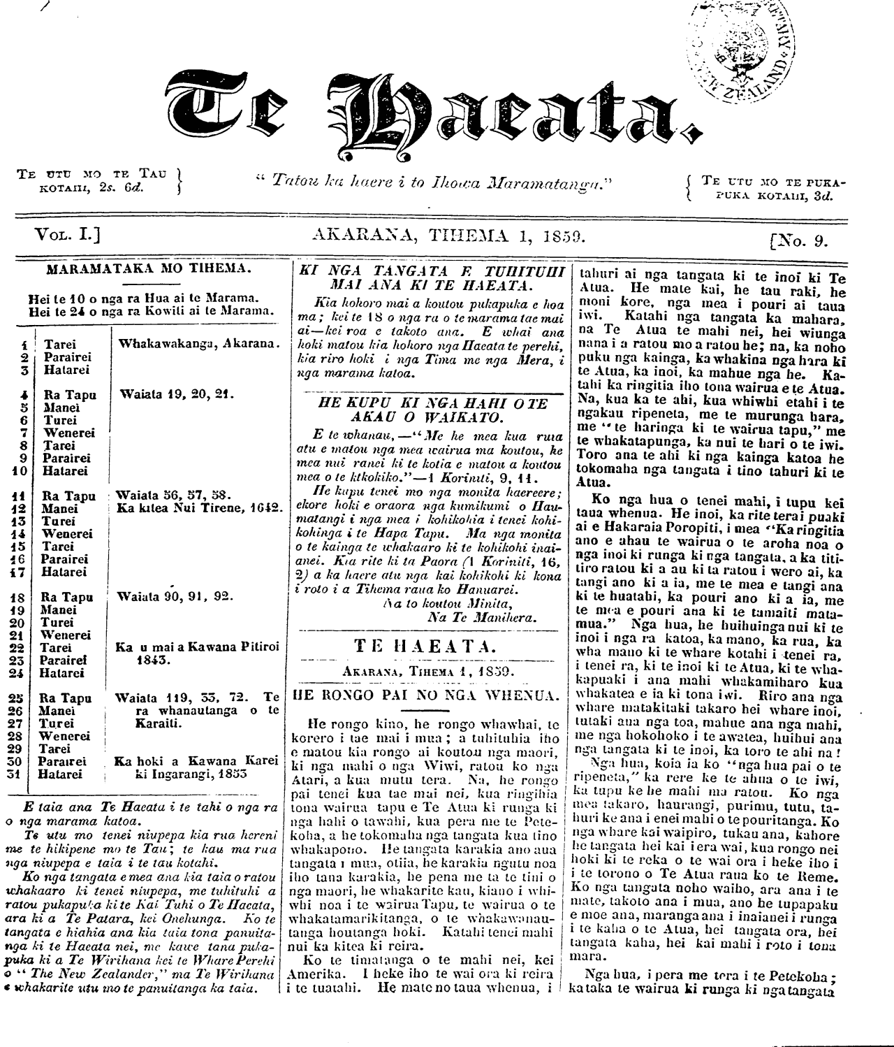 Te Haeata 1859-1862: Volume 1, Number 9. 01 December 1859 |