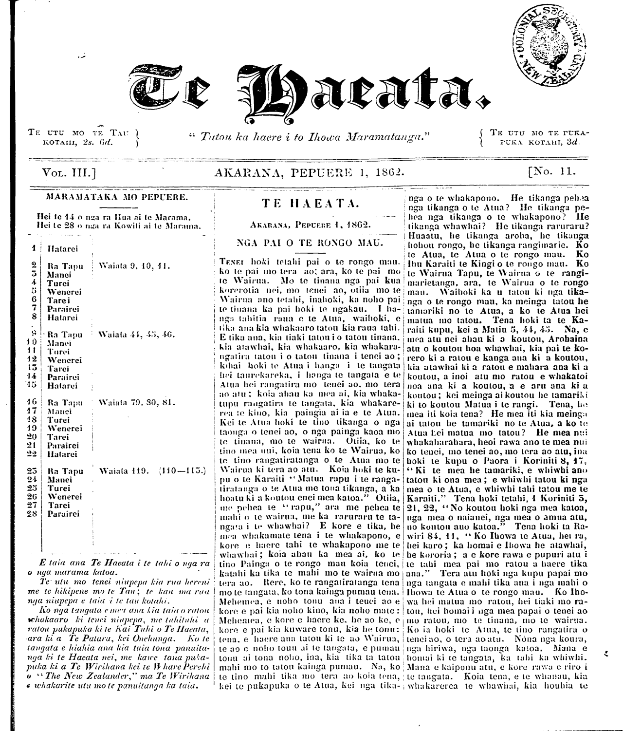 Te Haeata 1859-1862: Volume 3, Number 11. 01 February 1862 |