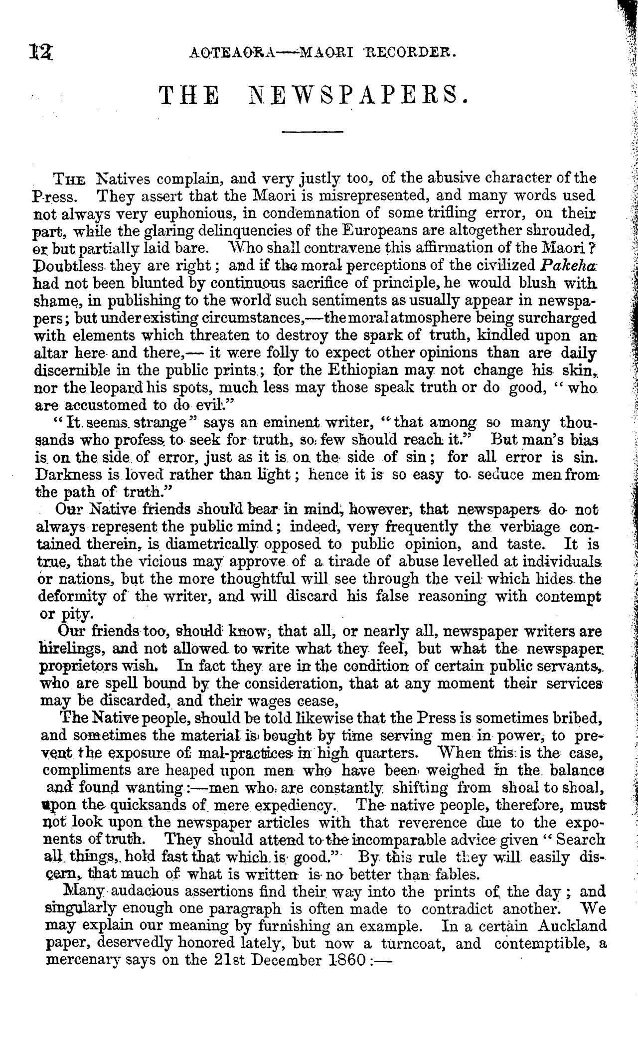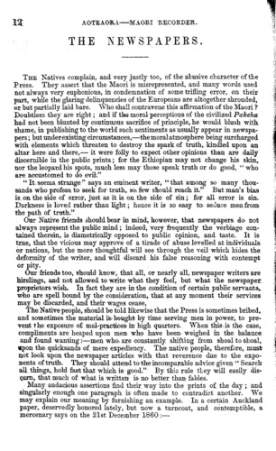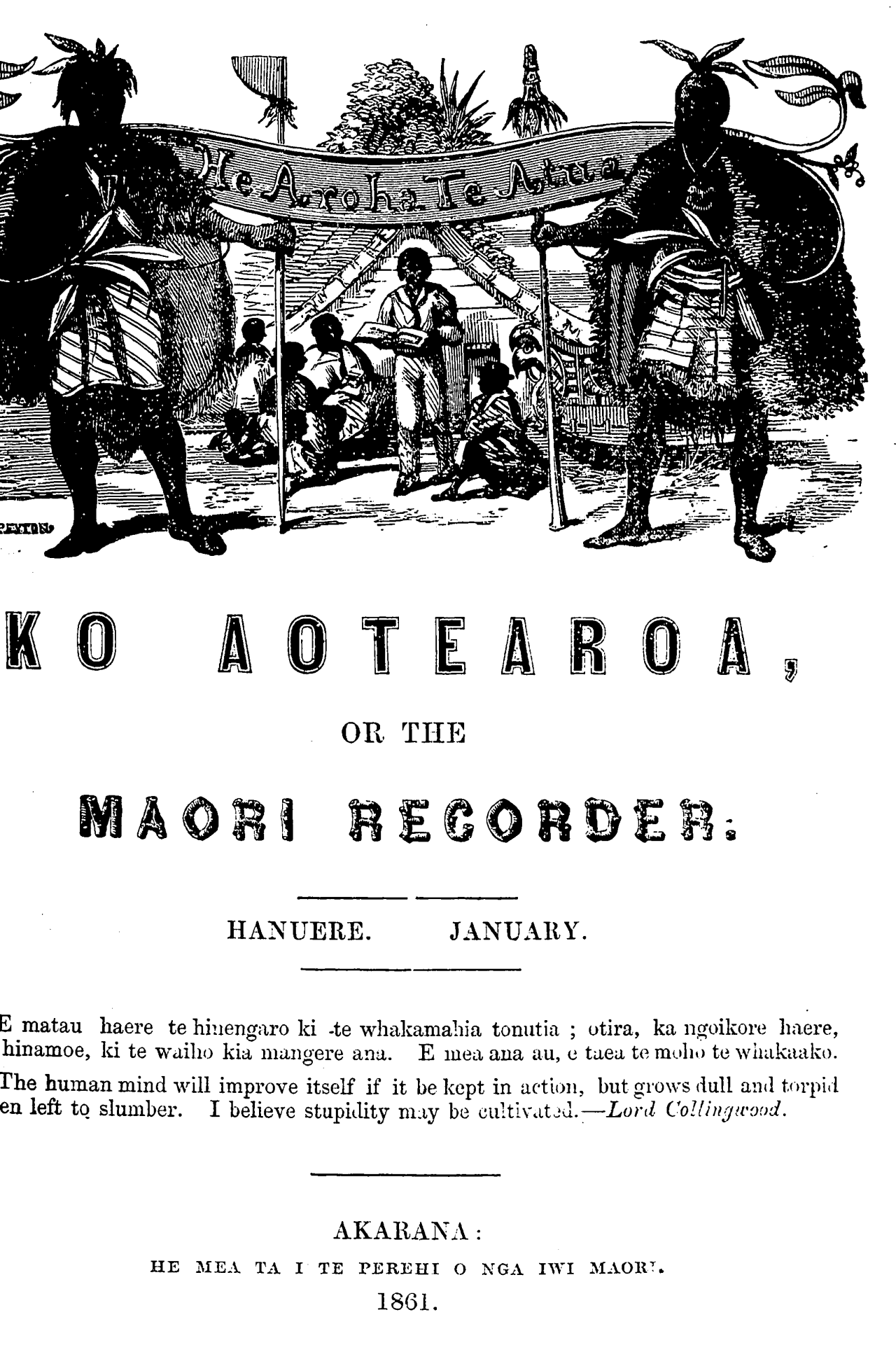 Aotearoa - Maori Recorder 1861-1862: Volume 1, Number 1. 01 January 1861 |