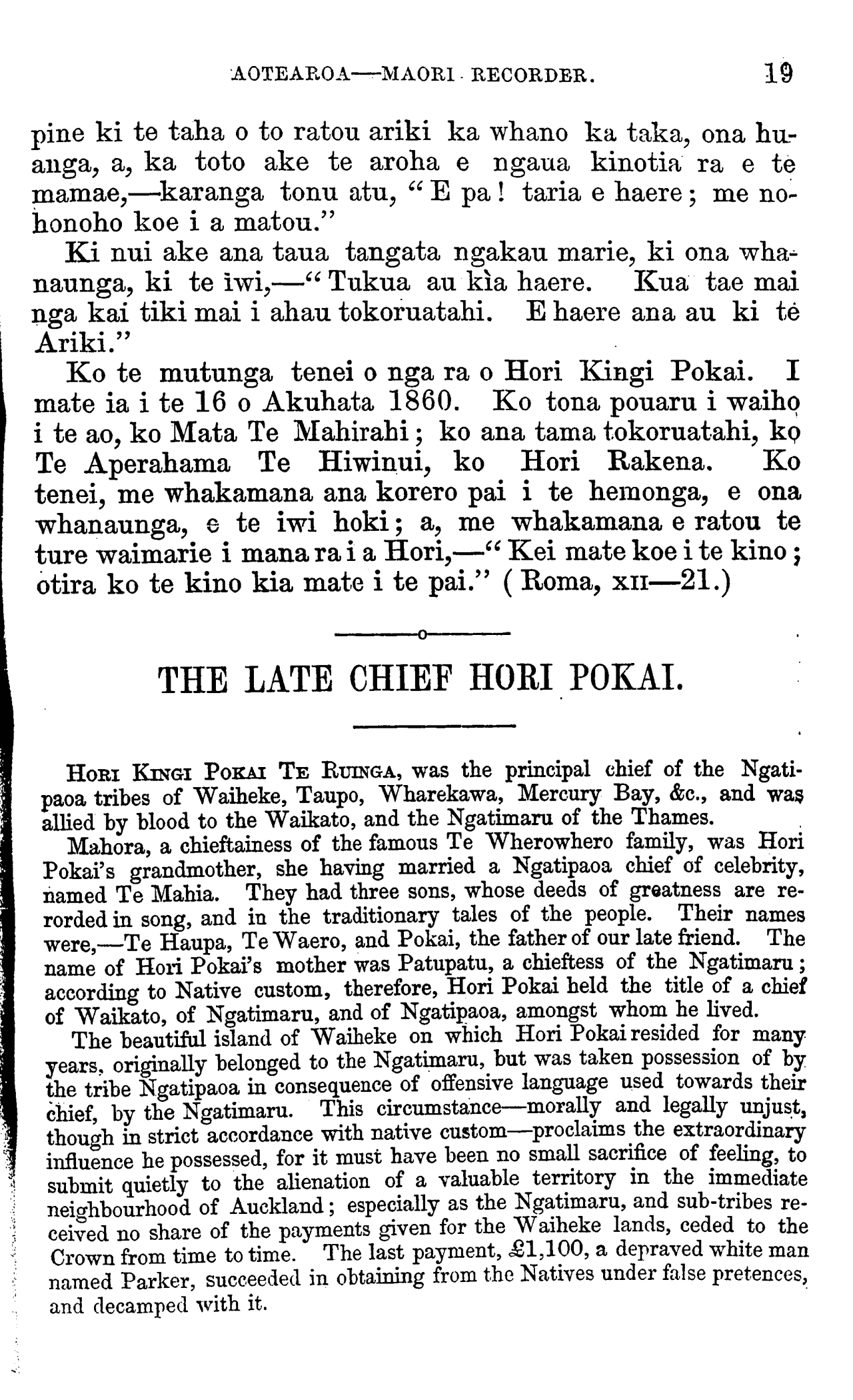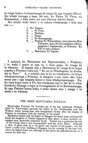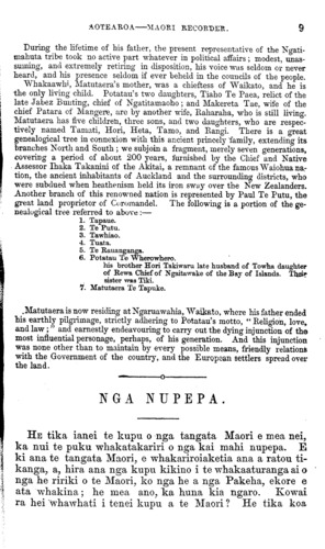 die chief Kenata Tamaki Hikurangi. It is published in the local journals.