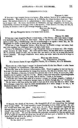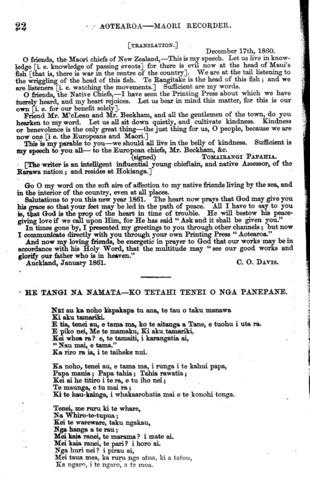 " The speech of Thomson Rauparaha respecting Mr. Interpreter Davis in the Kohi-