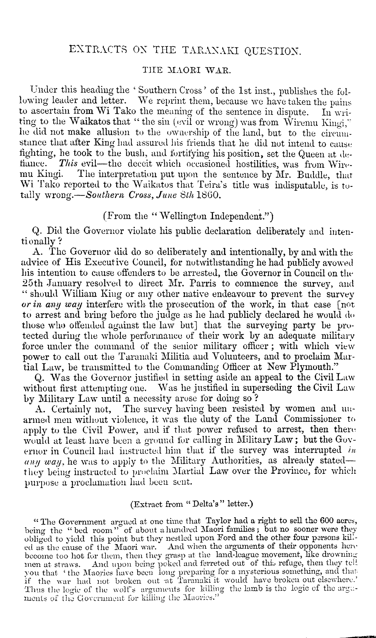 EXTRACTS ON THE TARANAKI QUESTION.
