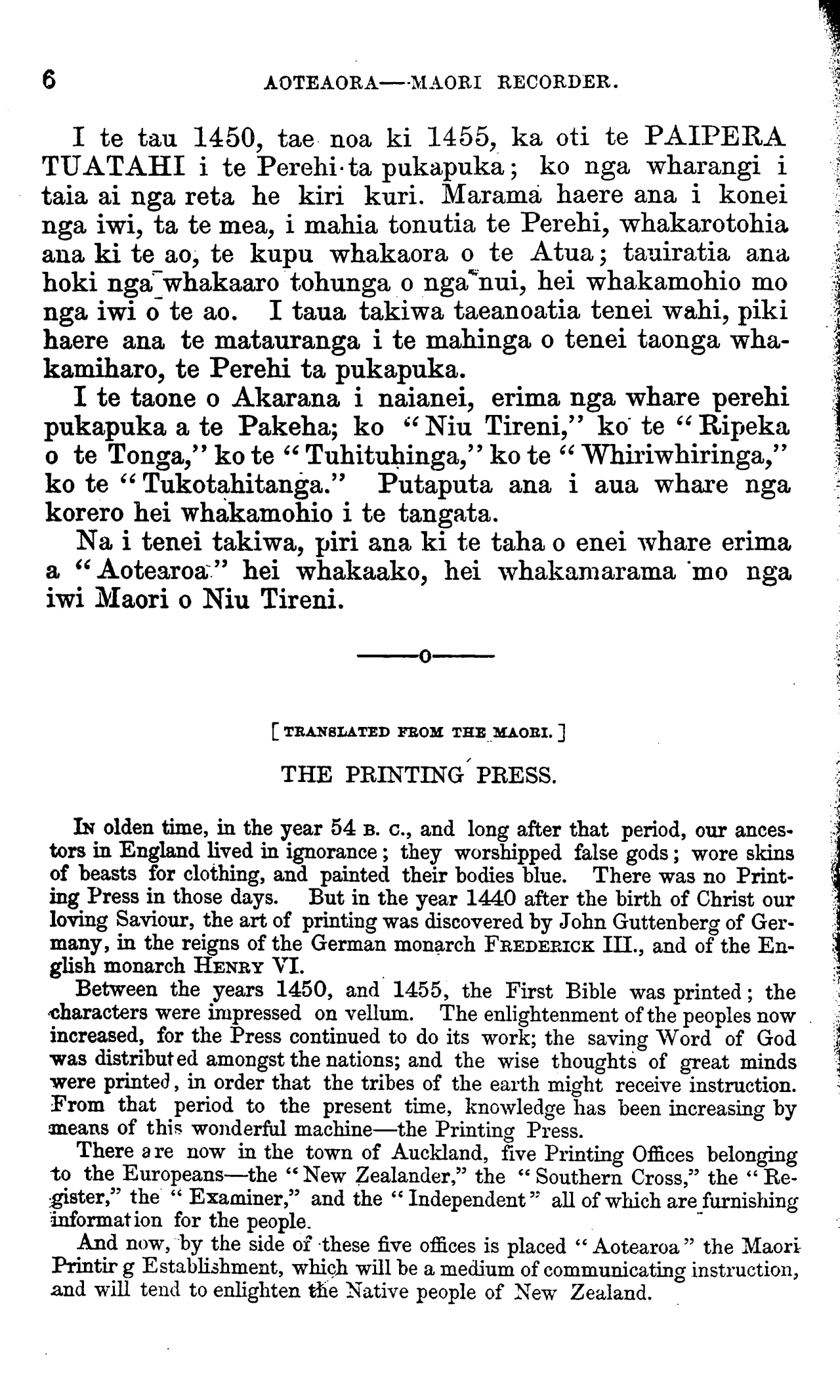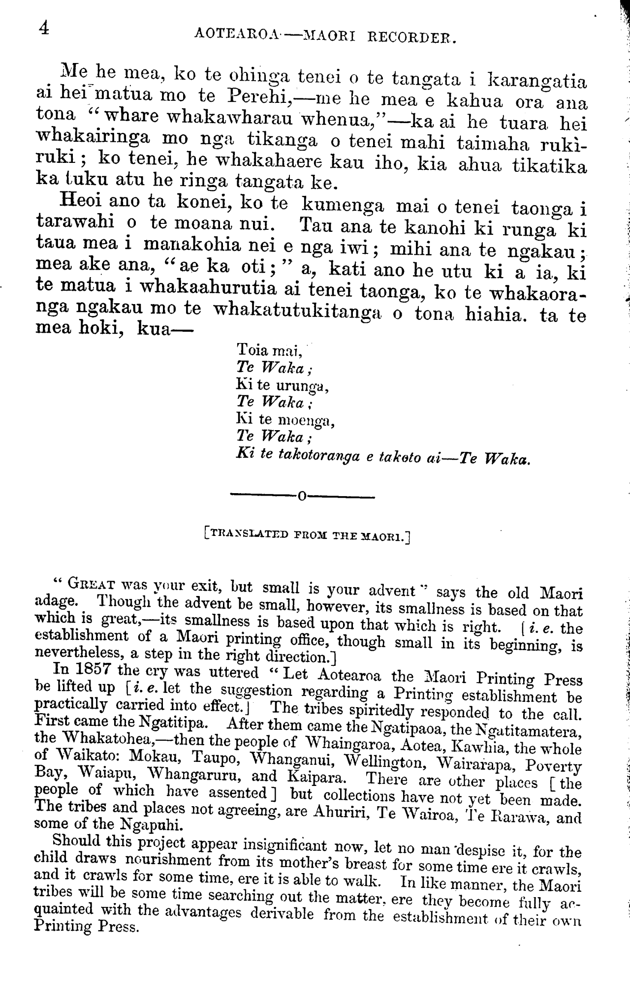 In 1857 the cry was uttered " Let Aotearoa the Maori Printing Press