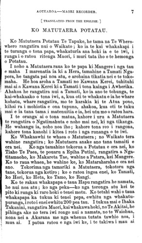 Ki atu ana he Rangatira Maori ki a Kawana Paraone, i naia tata nei, " Te tau koe hei