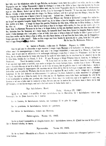naku Napanui, ara na te lwi katoa. Hepetema 8, 1862.