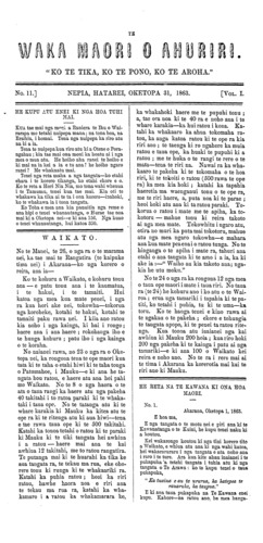 Te Waka Maori o Ahuriri 1863-1871: Volume 1, Number 11. 31 October 1863 |
