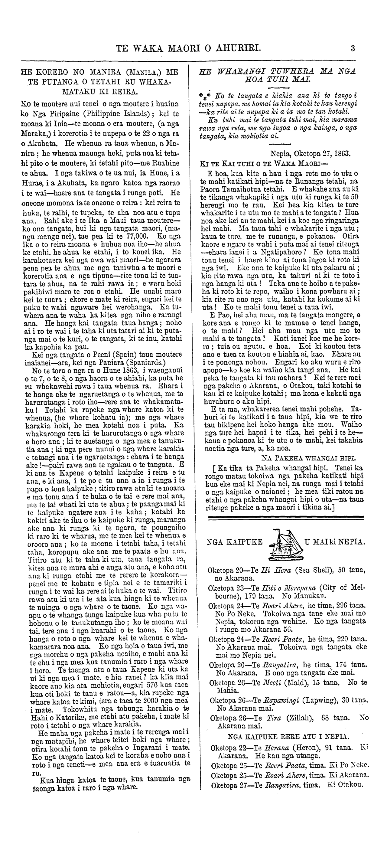 Nepia, Oketopa 13, 1863.