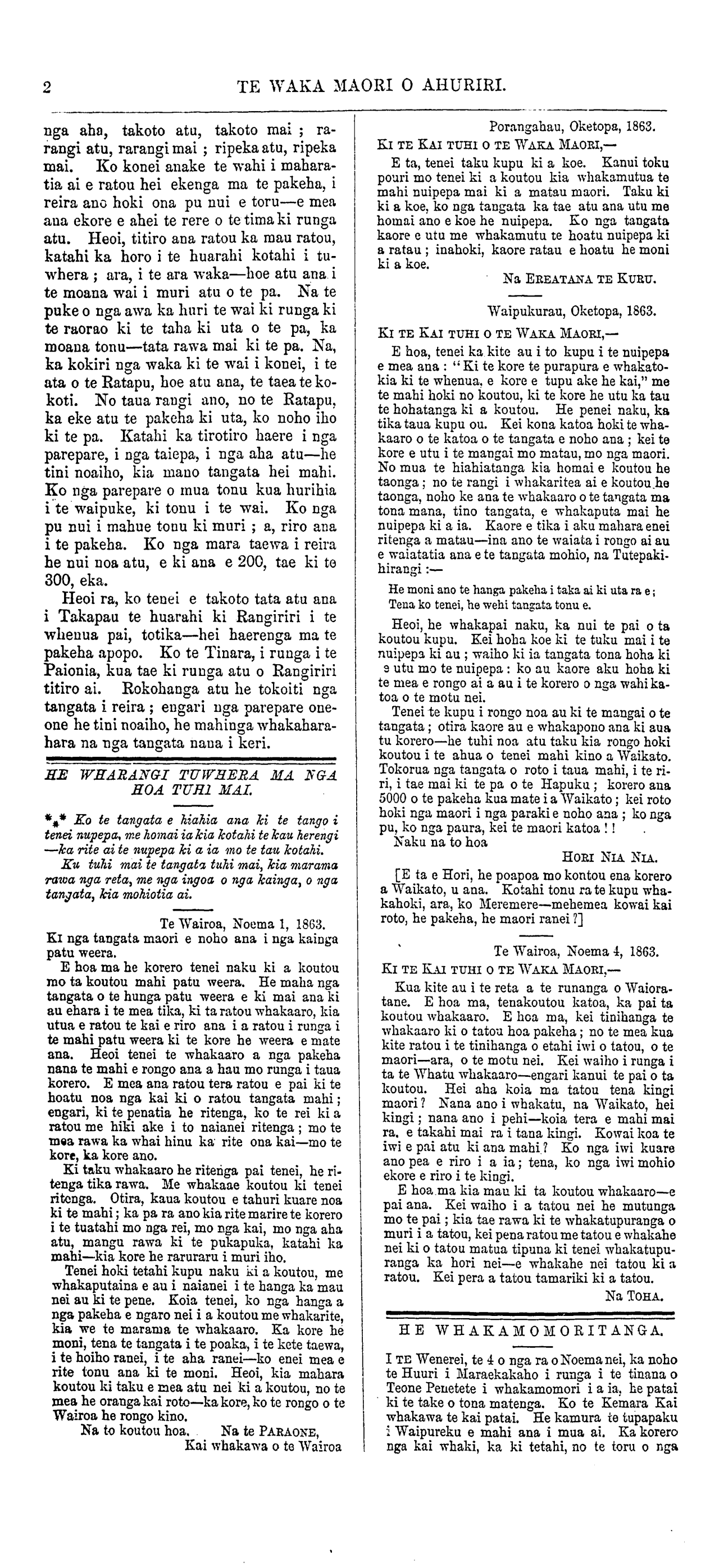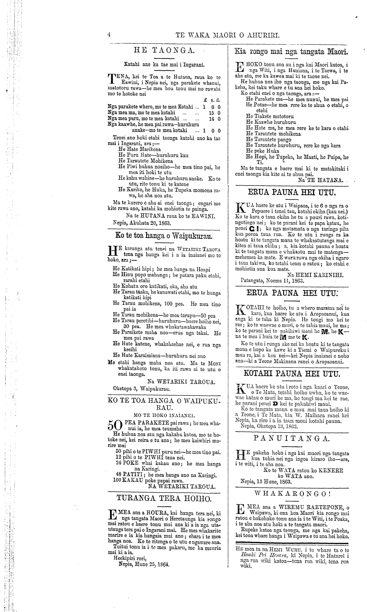Te Waka Maori o Ahuriri 1863-1871: Volume 1, Number 12. 14 November 1863 |