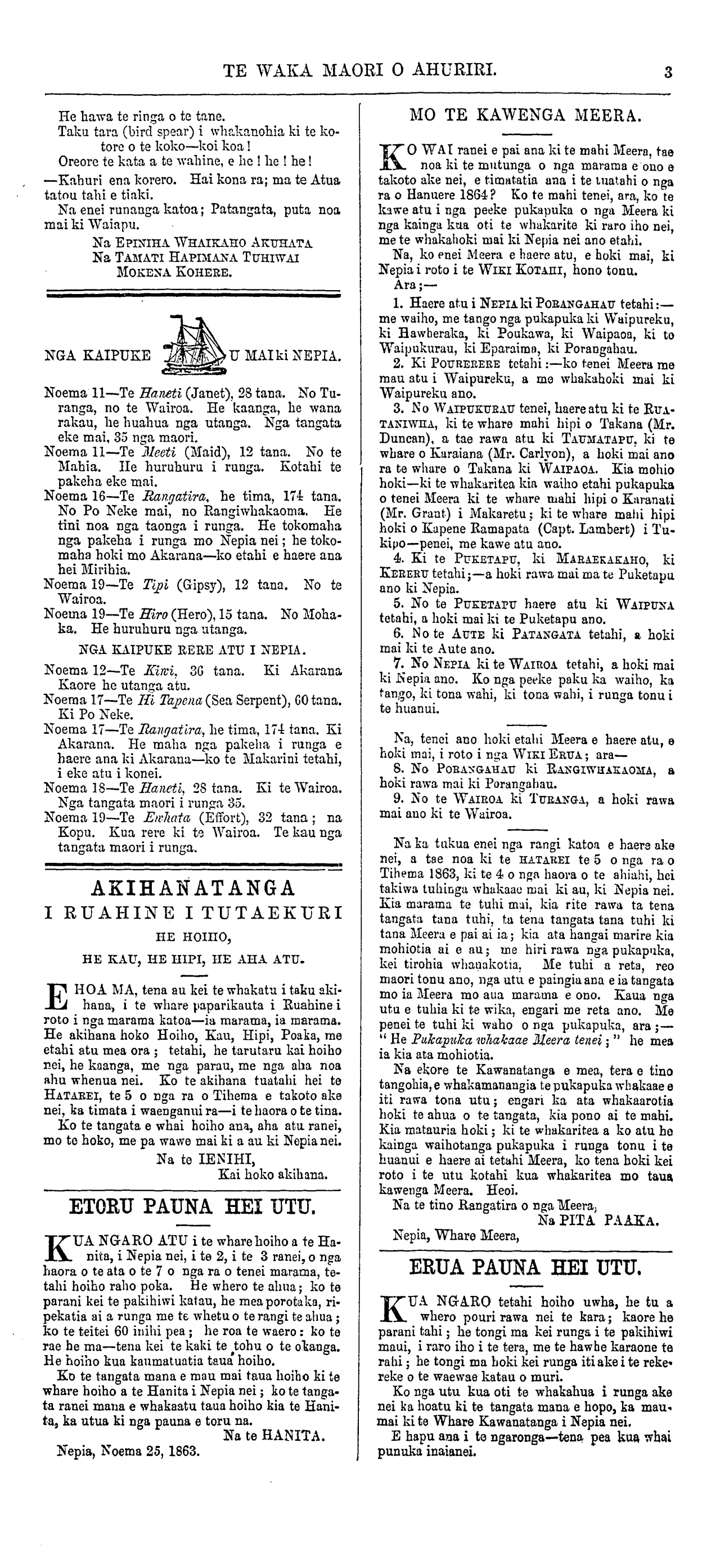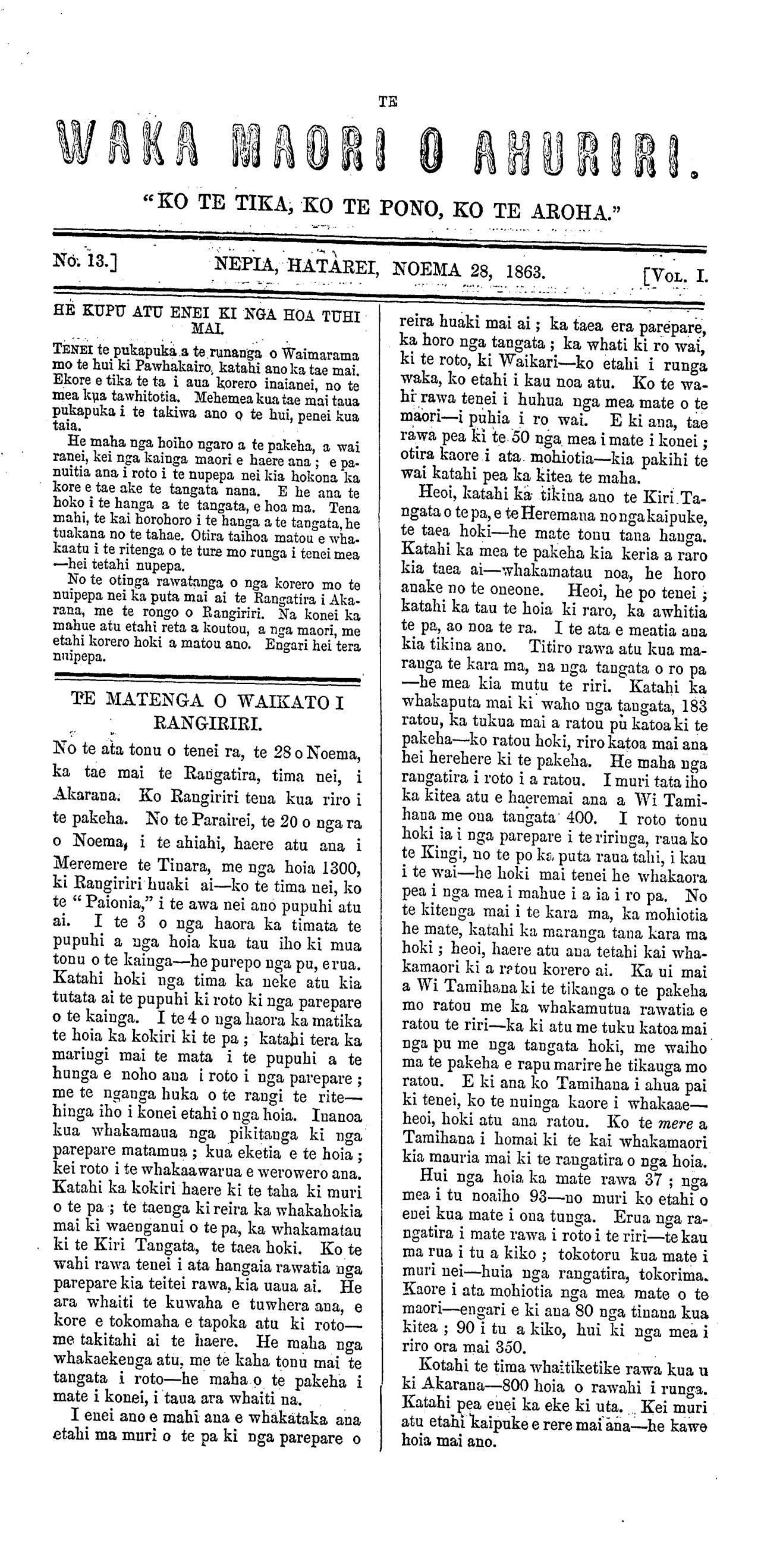 Te Waka Maori o Ahuriri 1863-1871: Volume 1, Number 13. 28 November 1863 |
