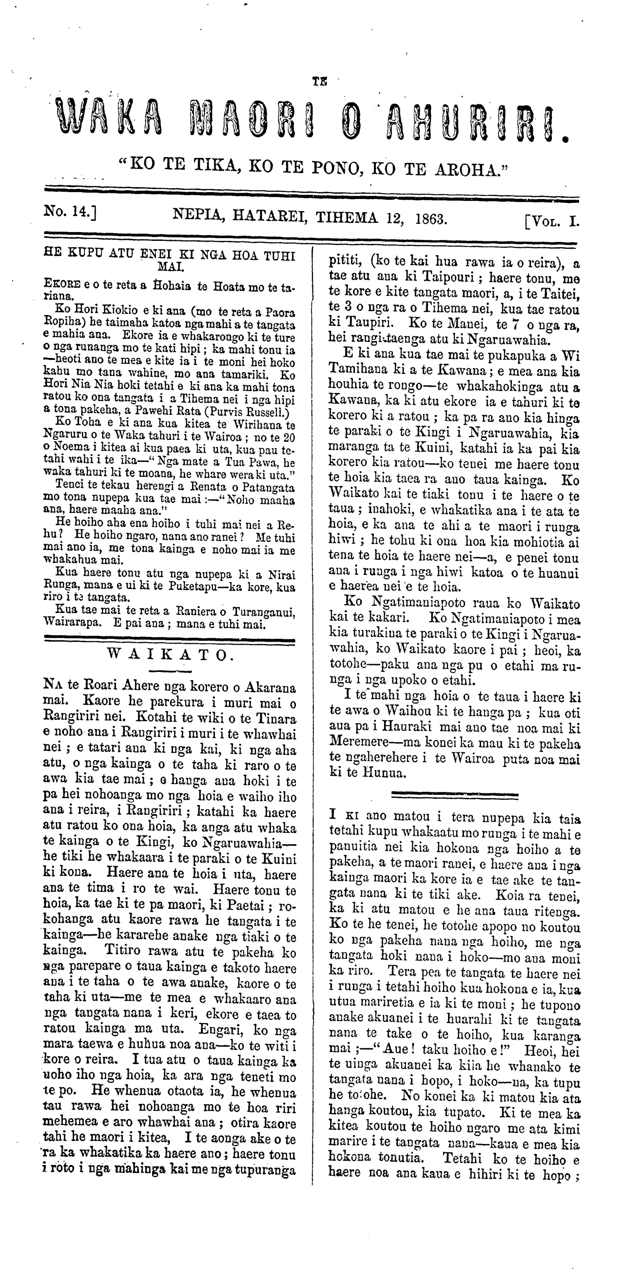 No. 14. ] NEPIA, HATAREI, TIHEMA 12, 1863. [VOL. I.