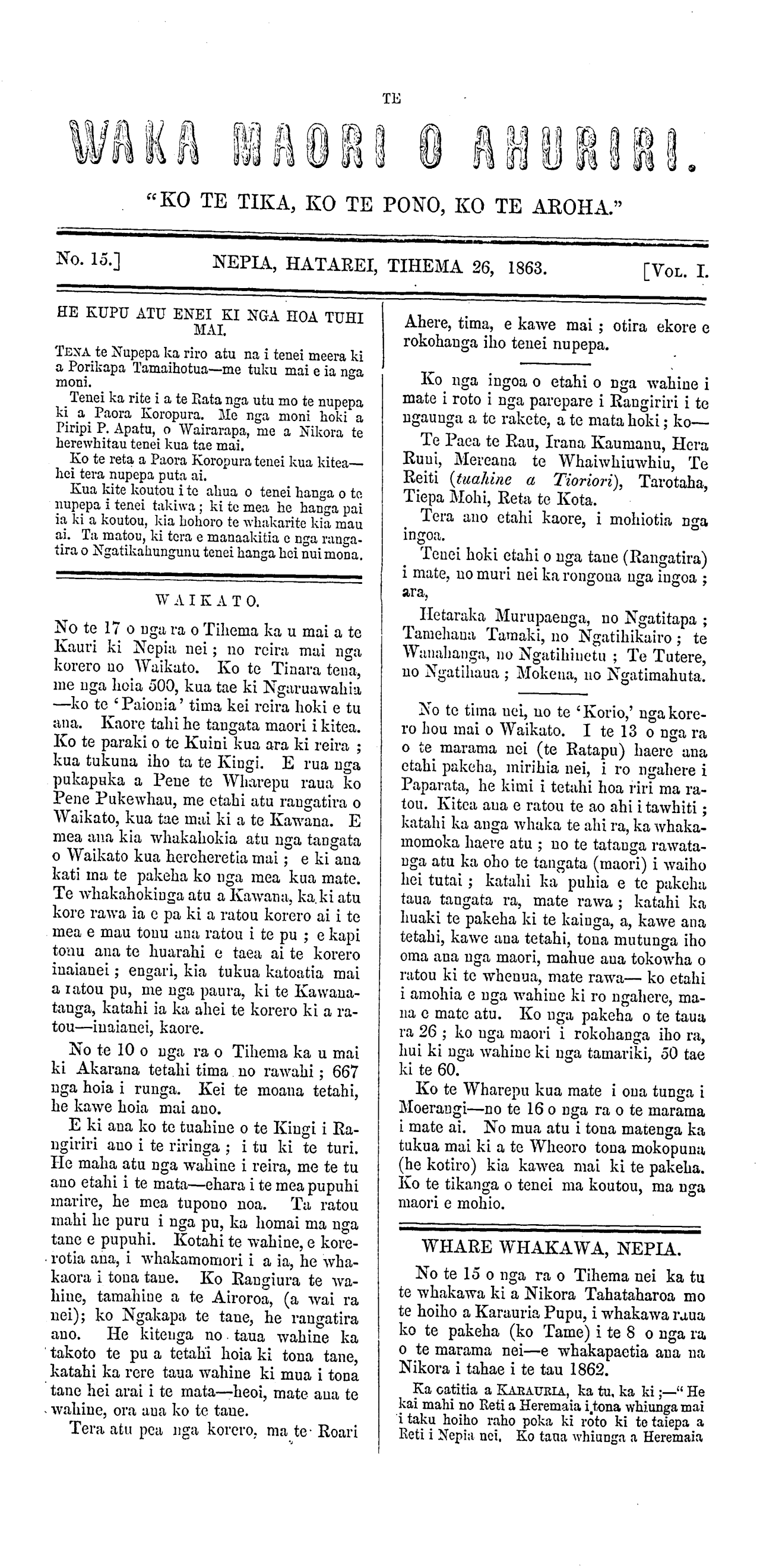 No. 15. ] NEPIA, HATAREI, TIHEMA 26, 1863. [VOL. I.