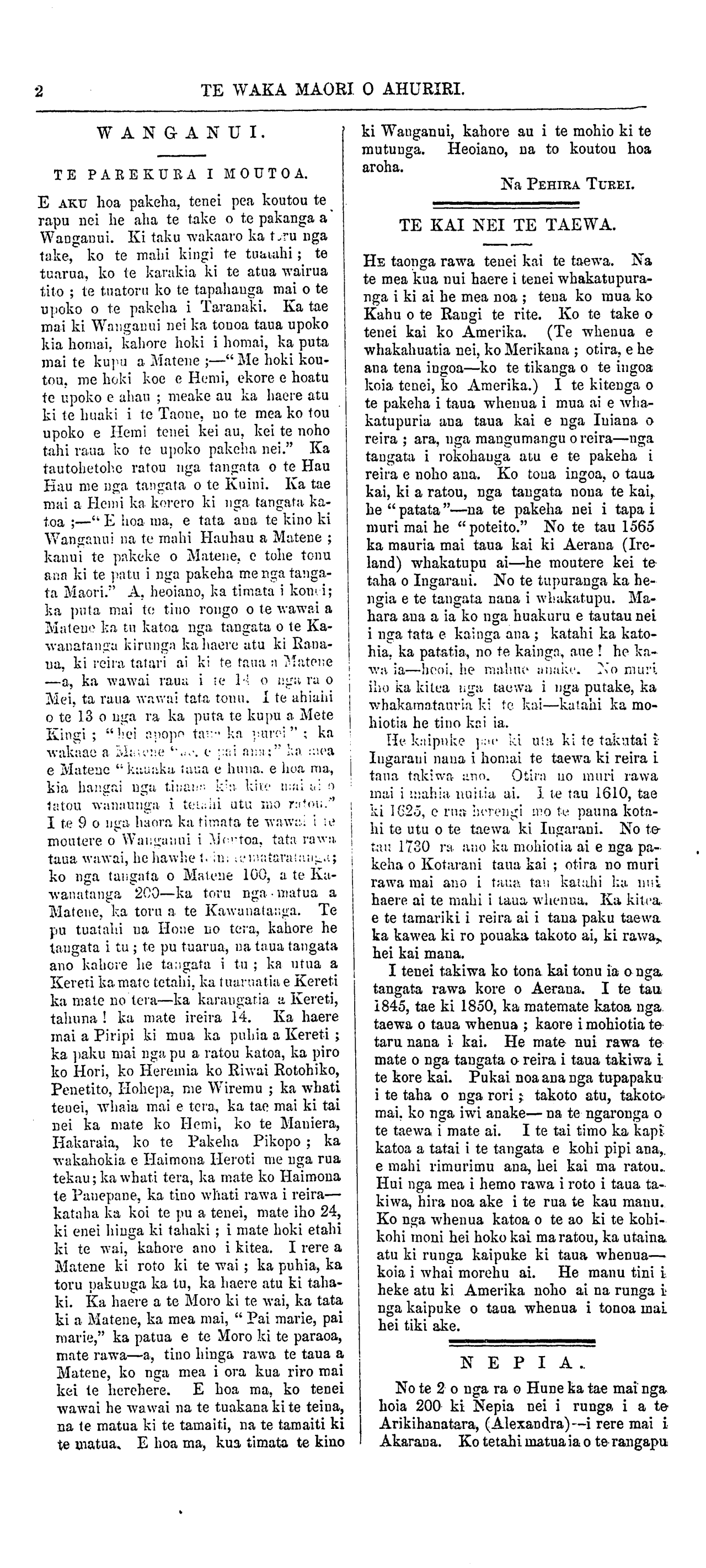 ta Maori." A. heoiano, ka timata i konei;
