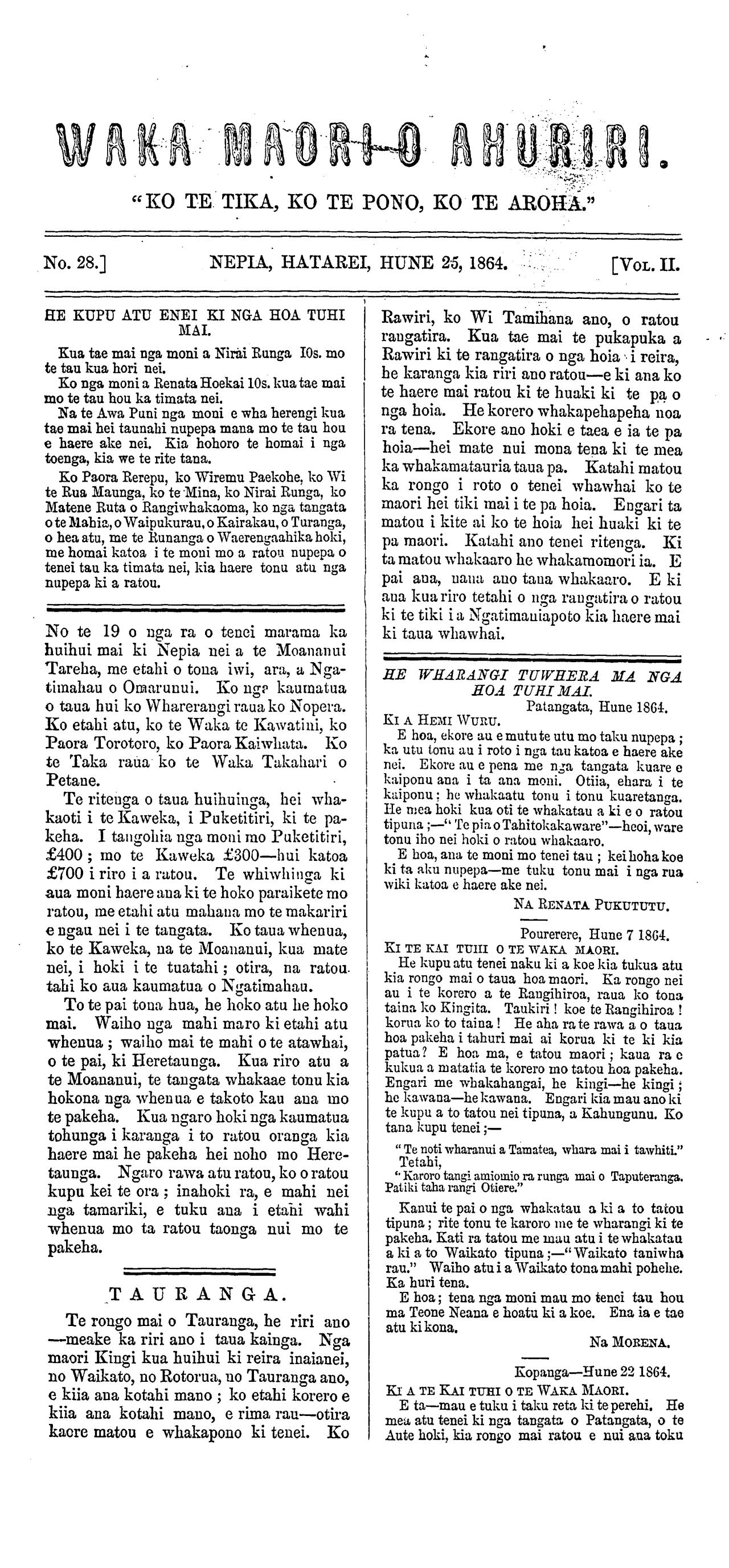 No. 28. ] NEPIA, HATAREI, HUNE 25, 1864. [VOL. II.