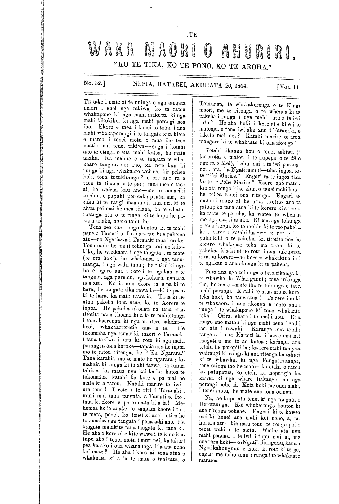 No. 32. ] NEPIA, HATAREI, AKUHATA 20, 1864. [VOL. 11