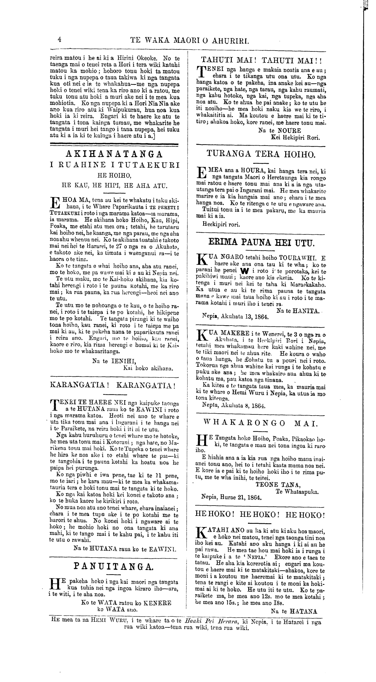 Te Waka Maori o Ahuriri 1863-1871: Volume 2, Number 32. 20 August 1864 |