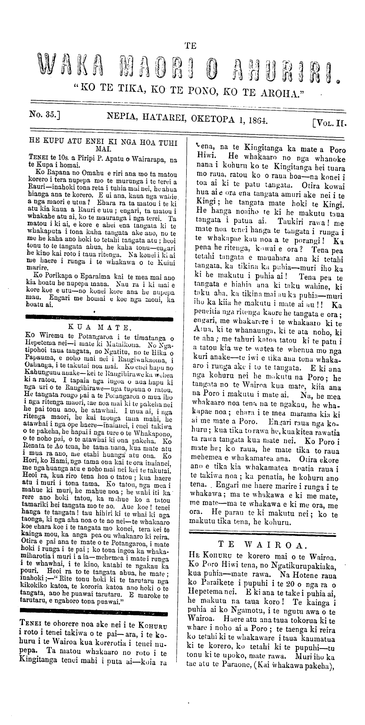 Te Waka Maori o Ahuriri 1863-1871: Volume 2, Number 35. 01 October 1864