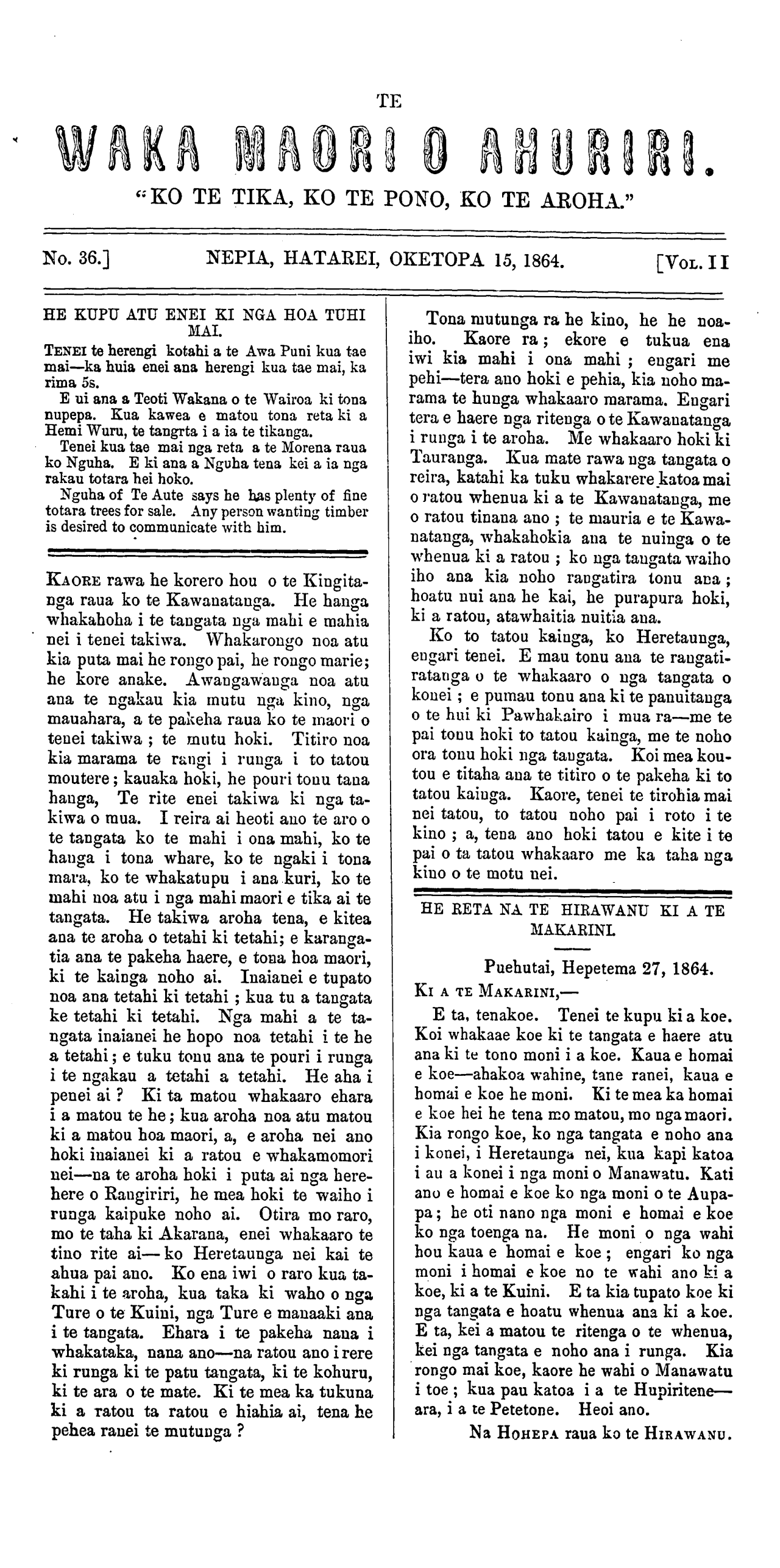 No. 36. ] NEPIA, HATAREI, OKETOPA 15, 1864. [VoL. II
