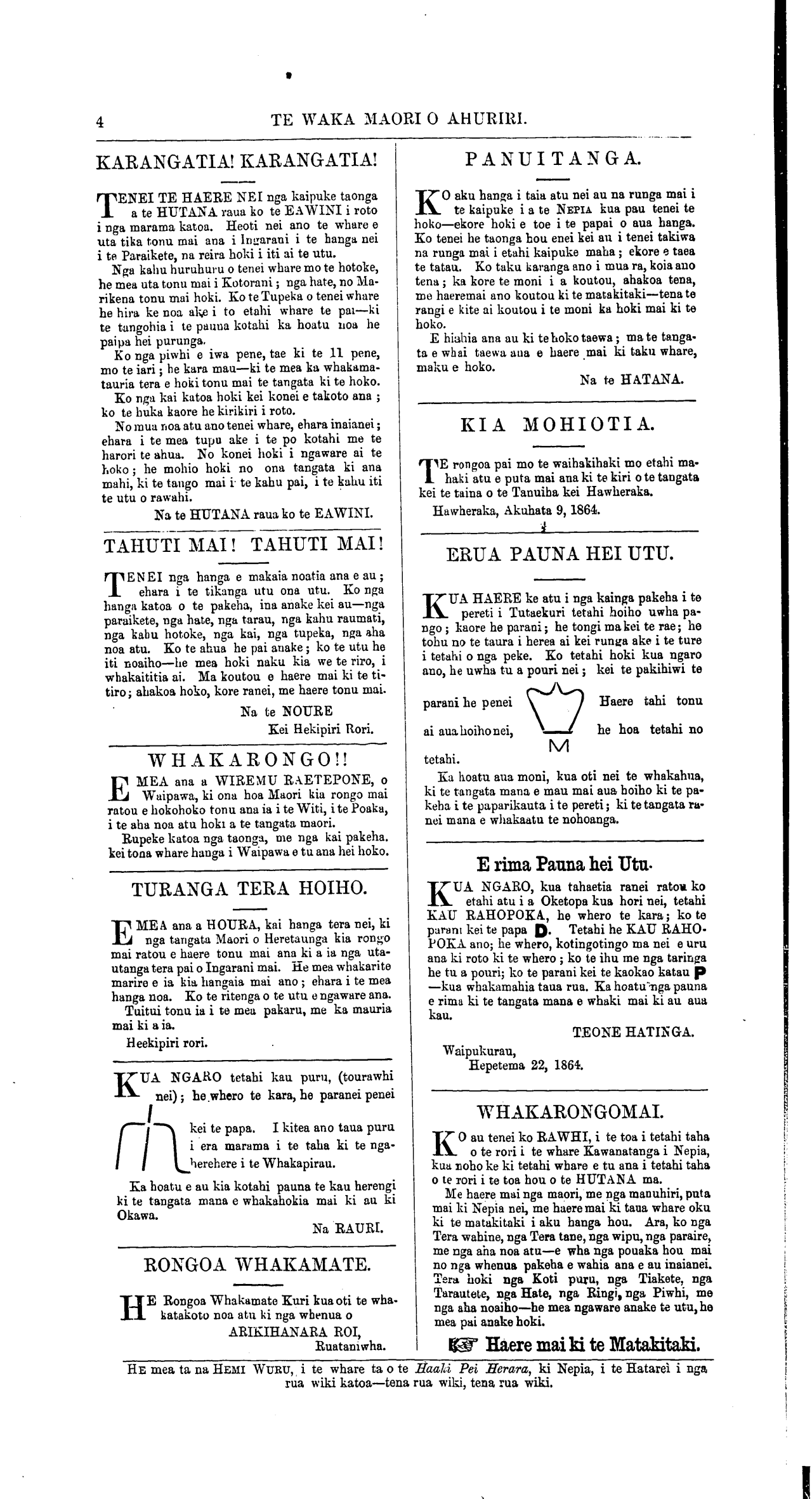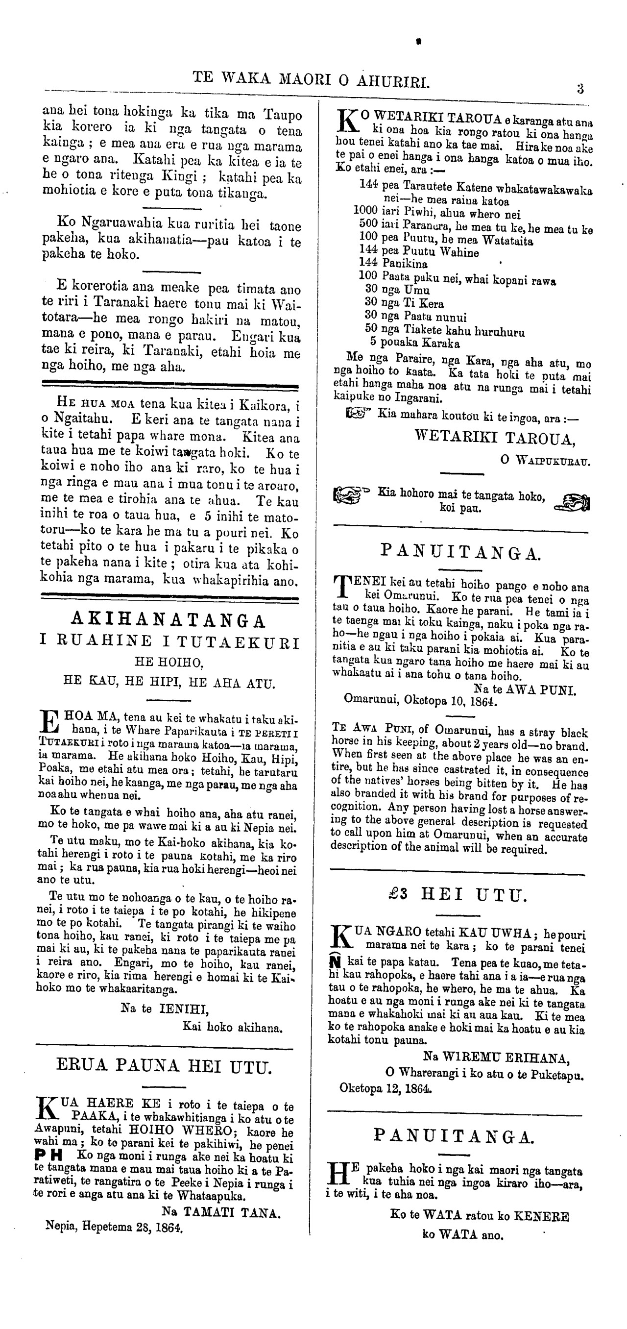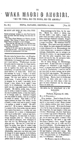 Te Waka Maori o Ahuriri 1863-1871: Volume 2, Number 36. 15 October 1864 |