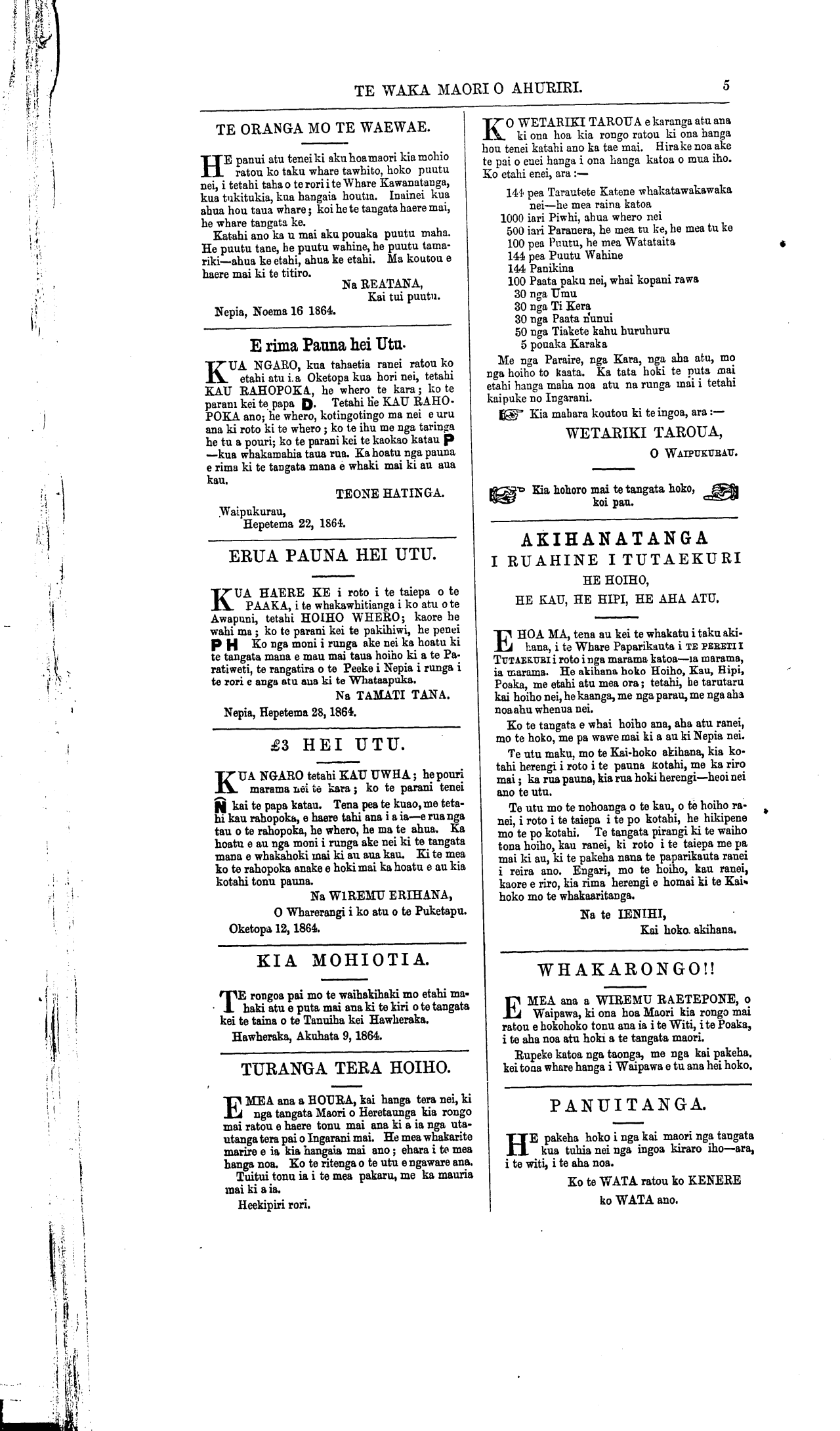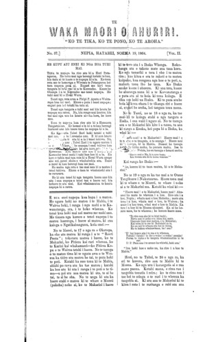 Te Waka Maori o Ahuriri 1863-1871: Volume 2, Number 37. 19 November 1864 |