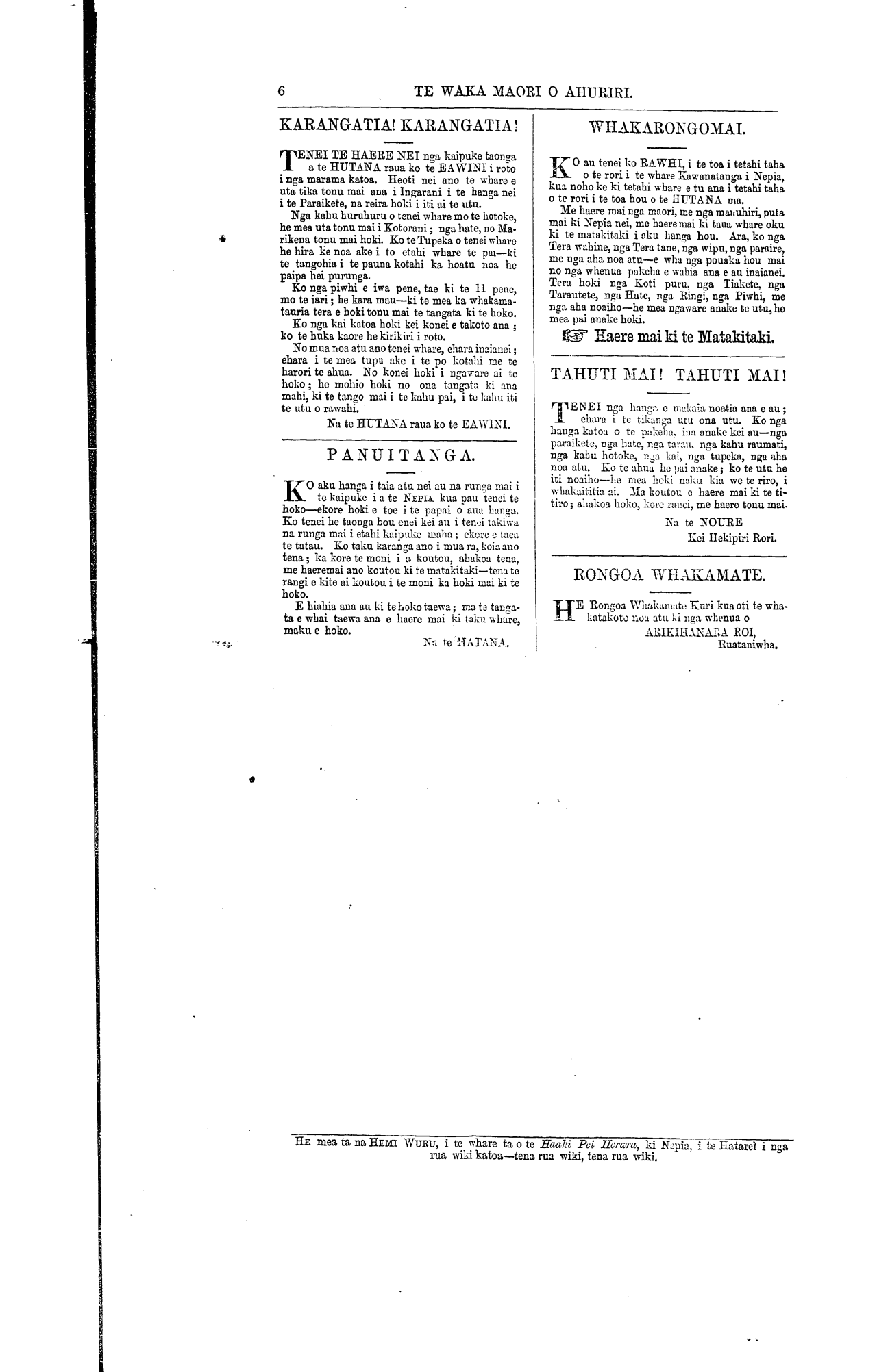 rapa kua tae mai. Ekore e puia i tenei nupepa;