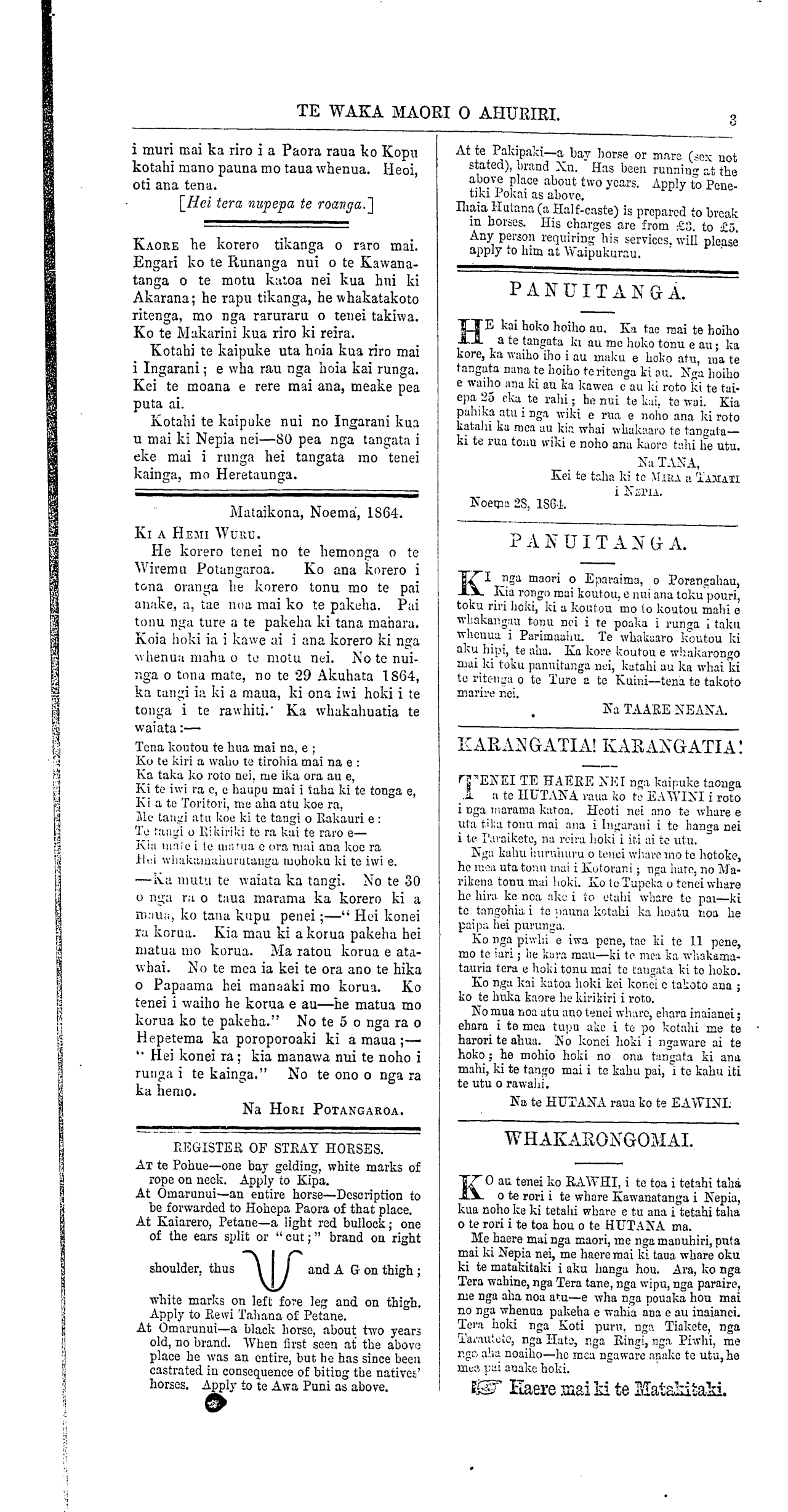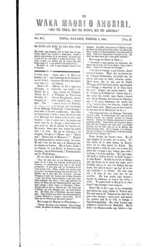 Te Waka Maori o Ahuriri 1863-1871: Volume 2, Number 38. 03 December 1864 |