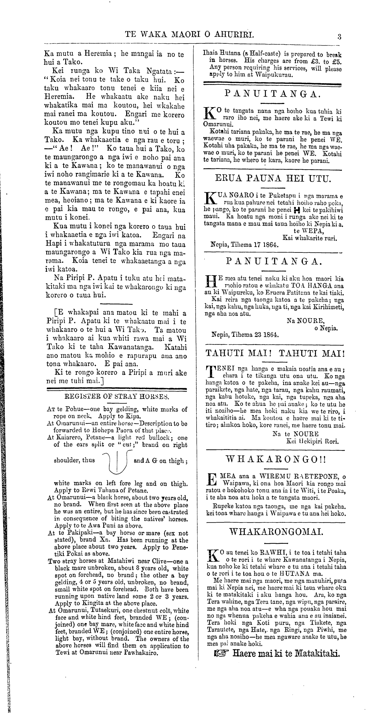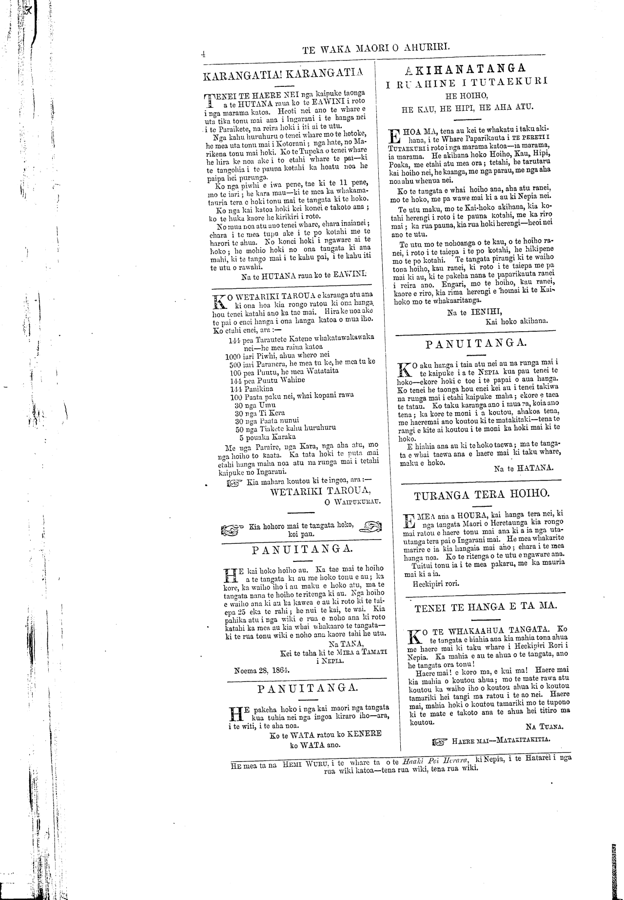 Te Waka Maori o Ahuriri 1863-1871: Volume 2, Number 40. 24 December 1864 |