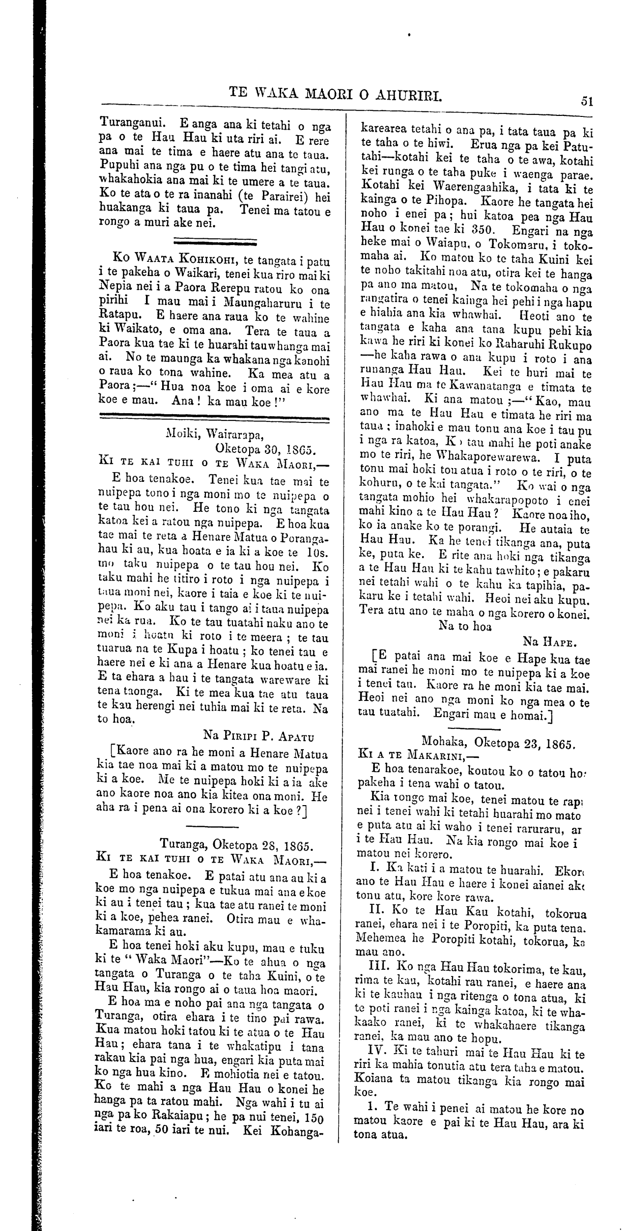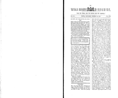 Te Waka Maori o Ahuriri 1863-1871: Volume 3, Number 64. 18 November 1865