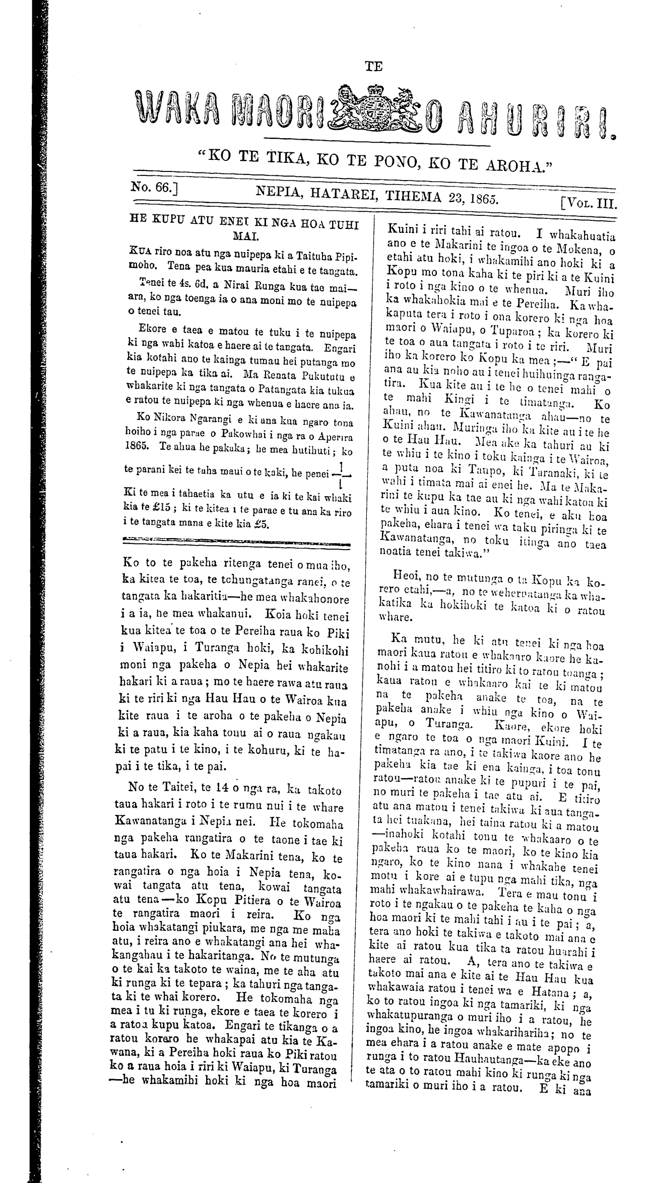 No. 66. ] NEPIA, HATAREI, TIHEMA 23, 1865. [VOL. III.