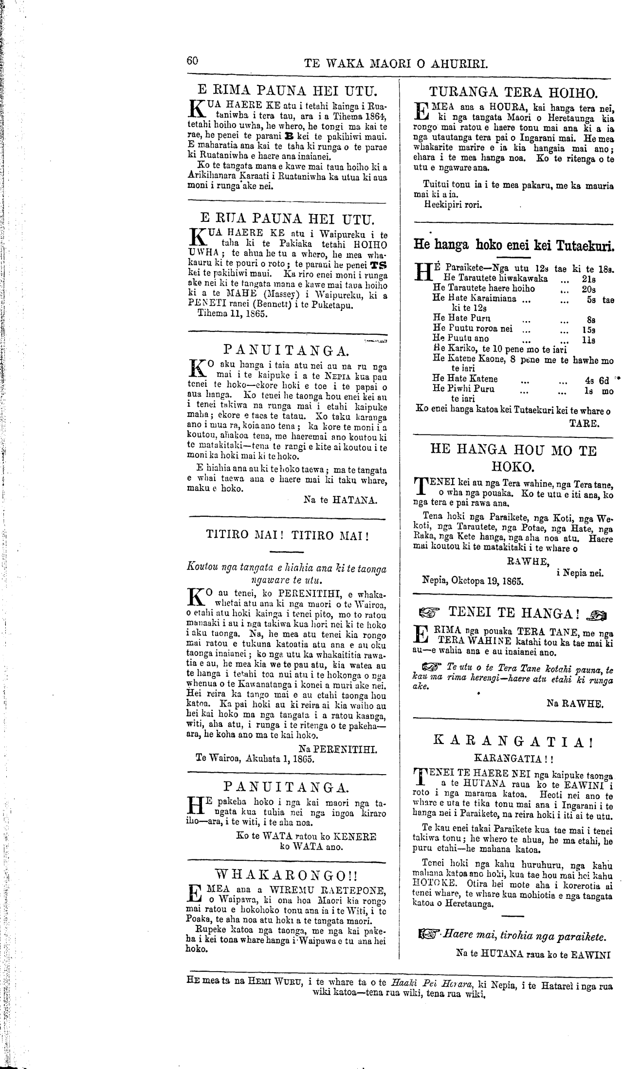 Te Waka Maori o Ahuriri 1863-1871: Volume 3, Number 66. 23 December 1865 |
