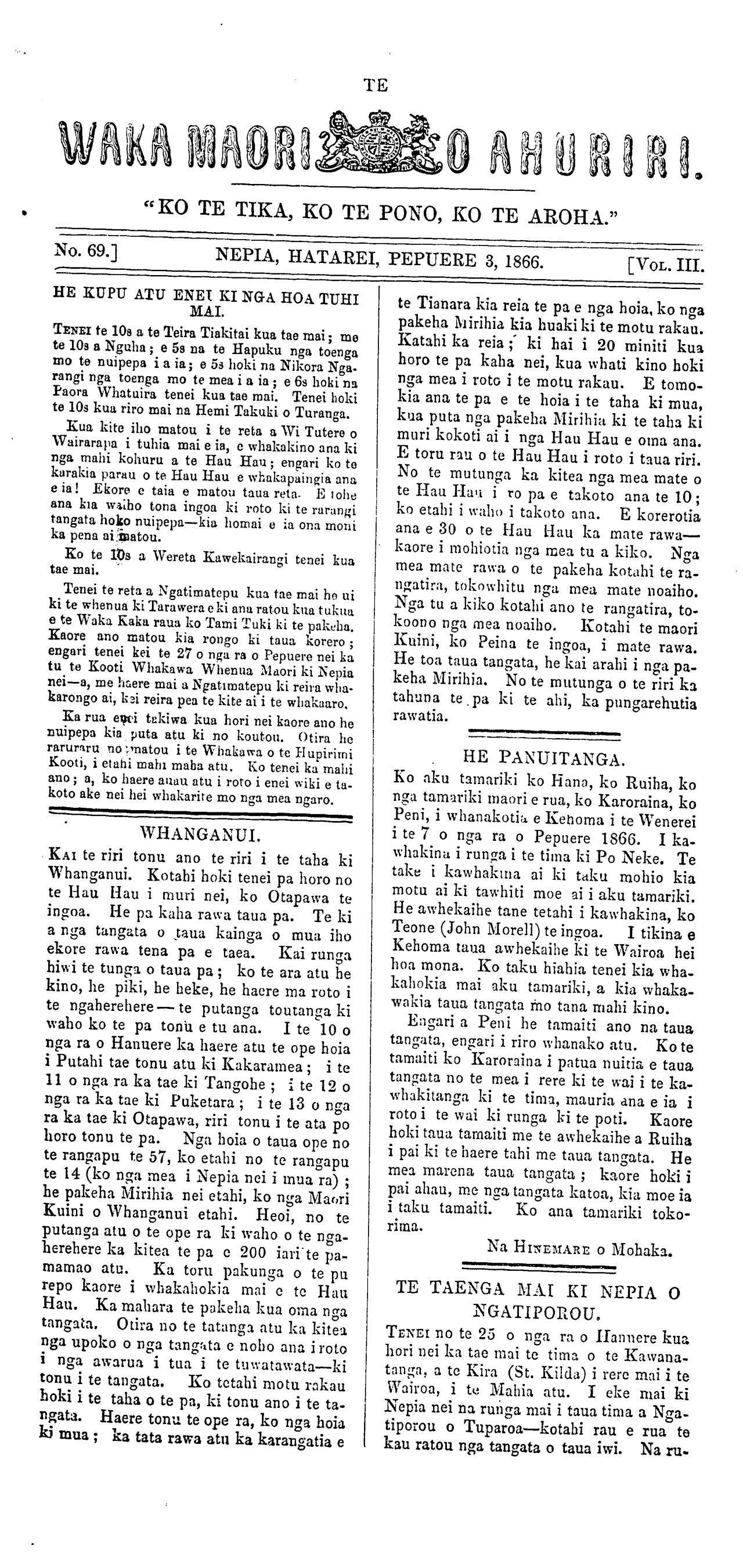 Te Waka Maori o Ahuriri 1863-1871: Volume 3, Number 69. 03 February 1866 |