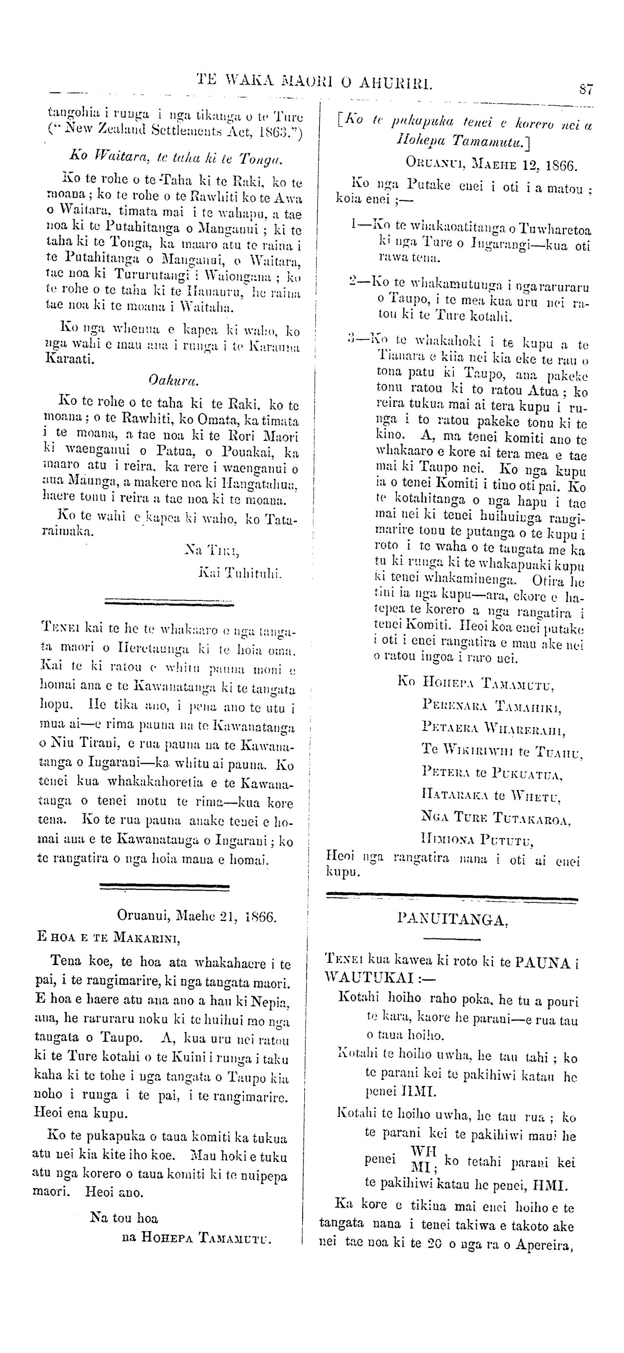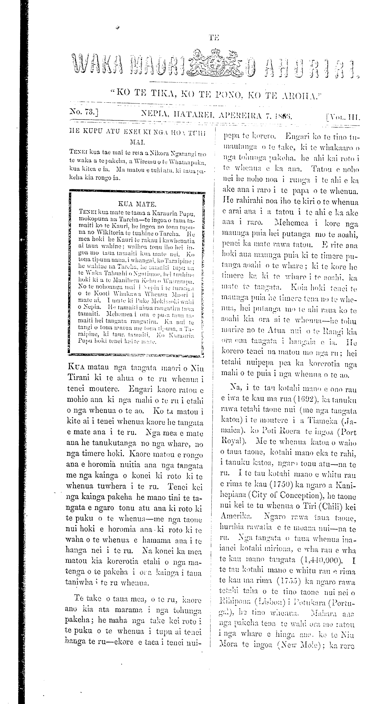 Te Waka Maori o Ahuriri 1863-1871: Volume 3, Number 73. 07 April 1866 |
