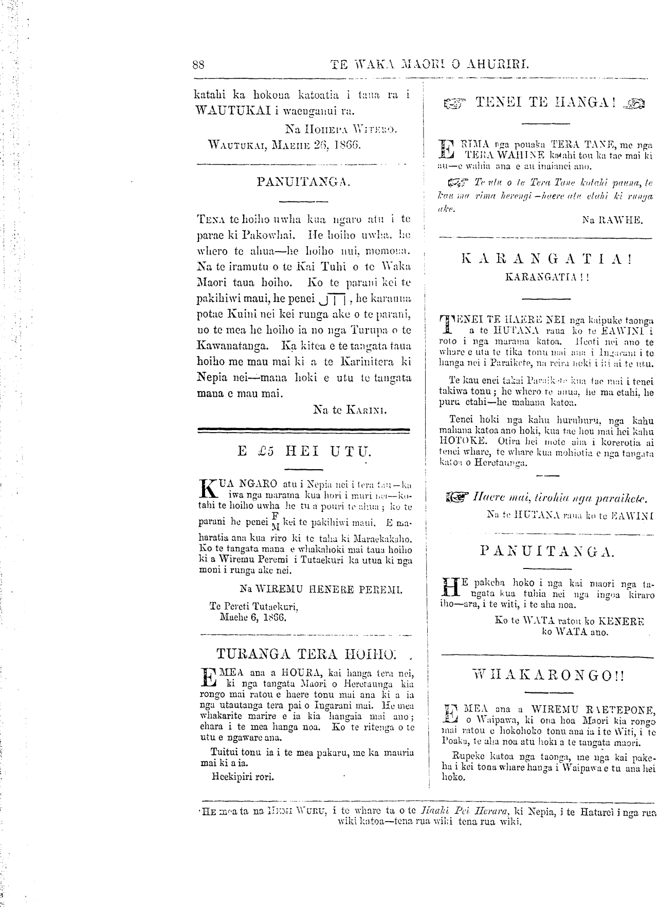 ki a Wiremu Peremi i Tutaekuri ka utua ki nga