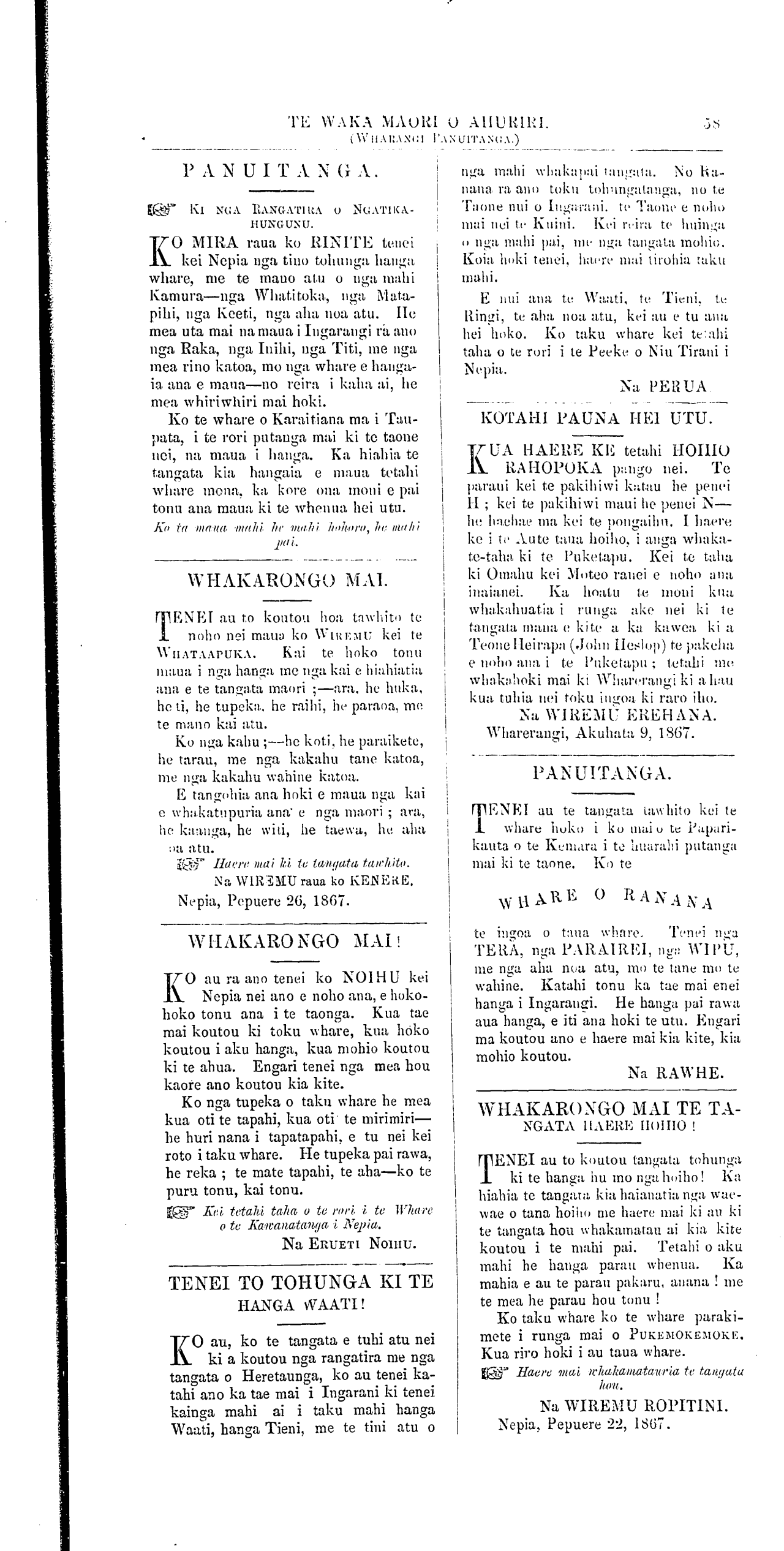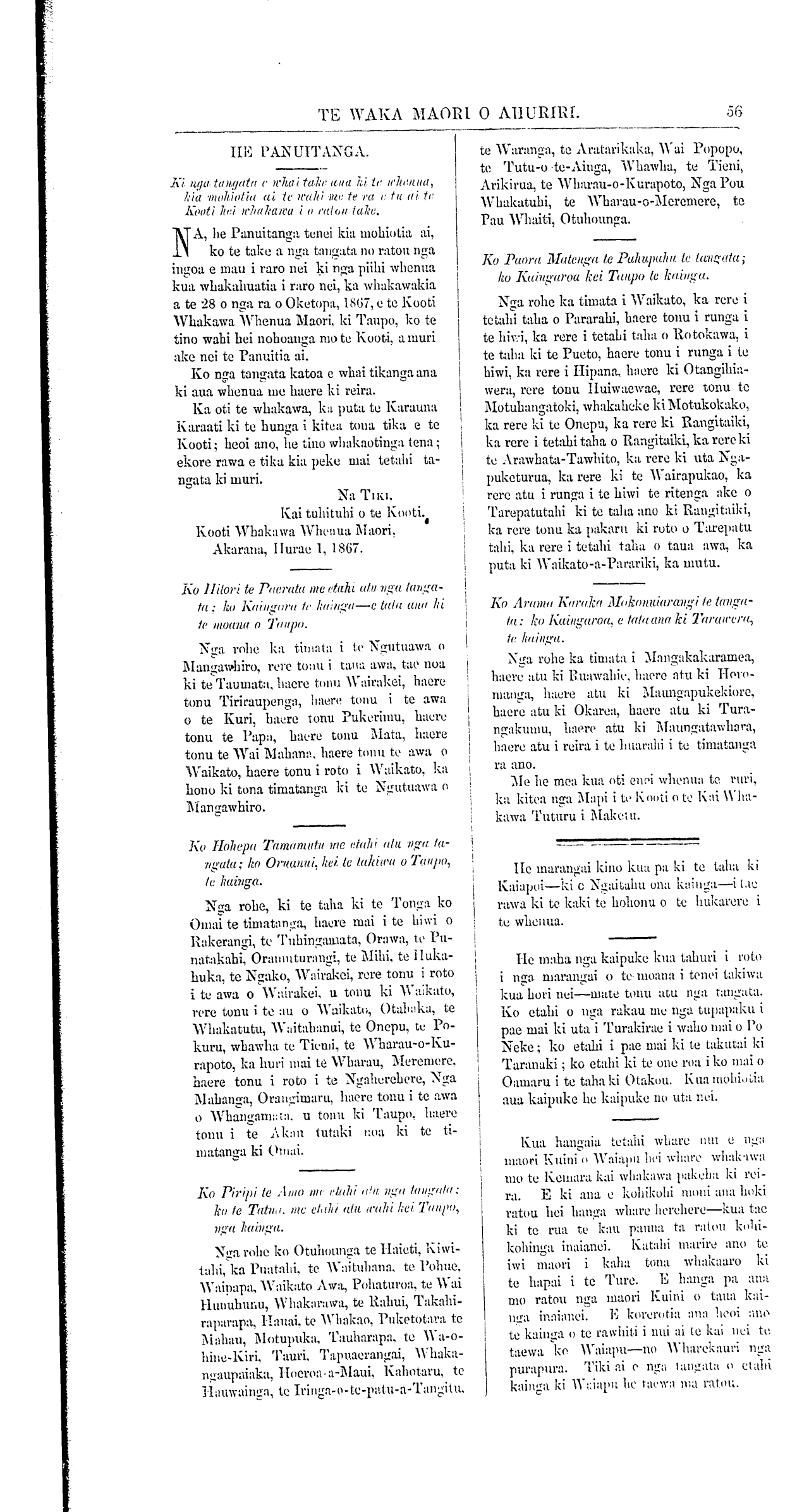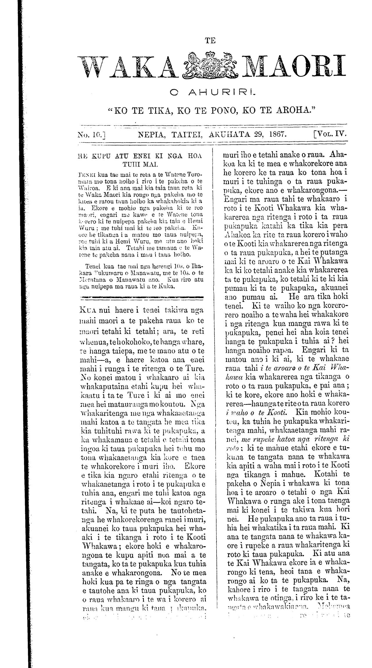 Te Waka Maori o Ahuriri 1863-1871: Volume 4, Number 10. 29 August 1867 |