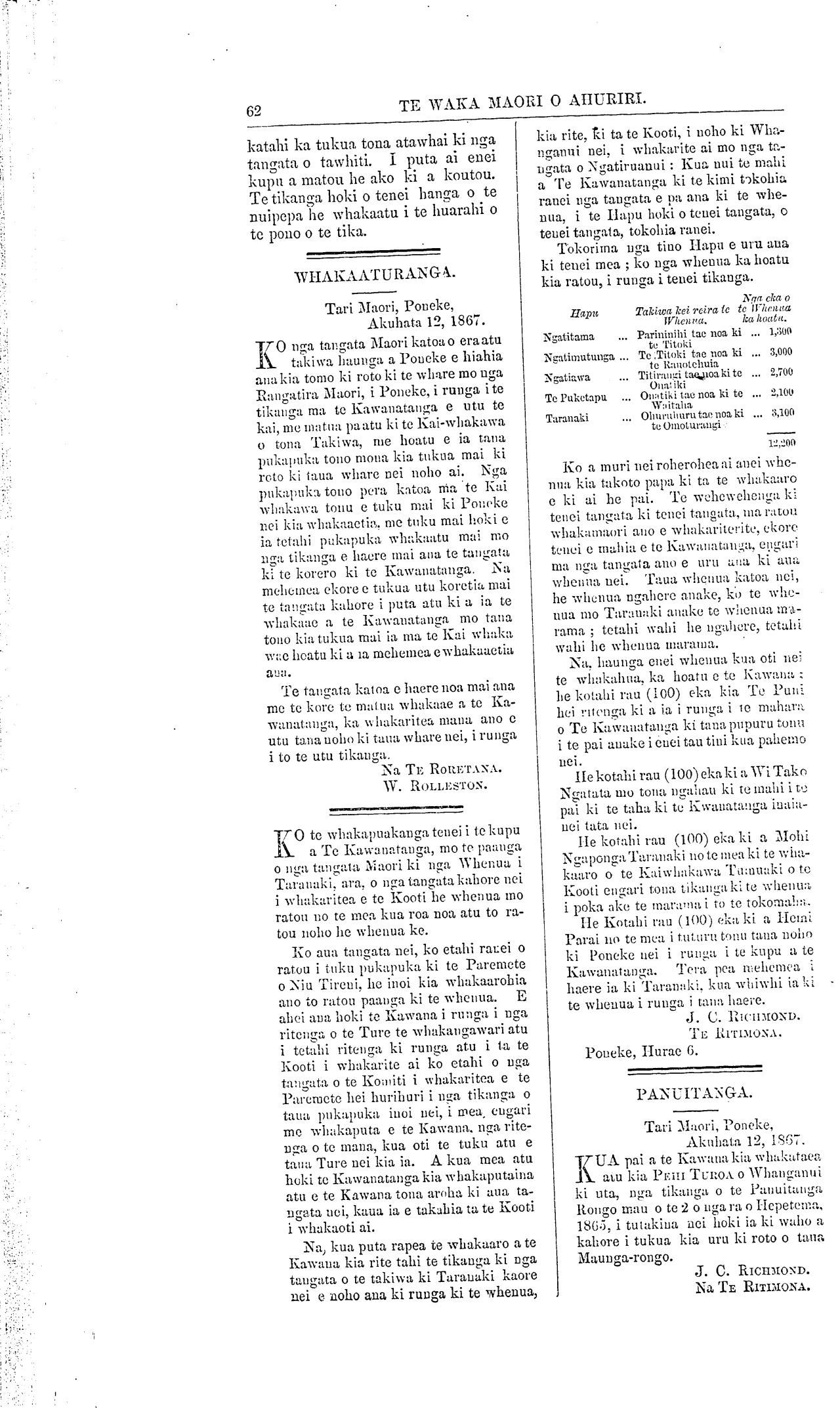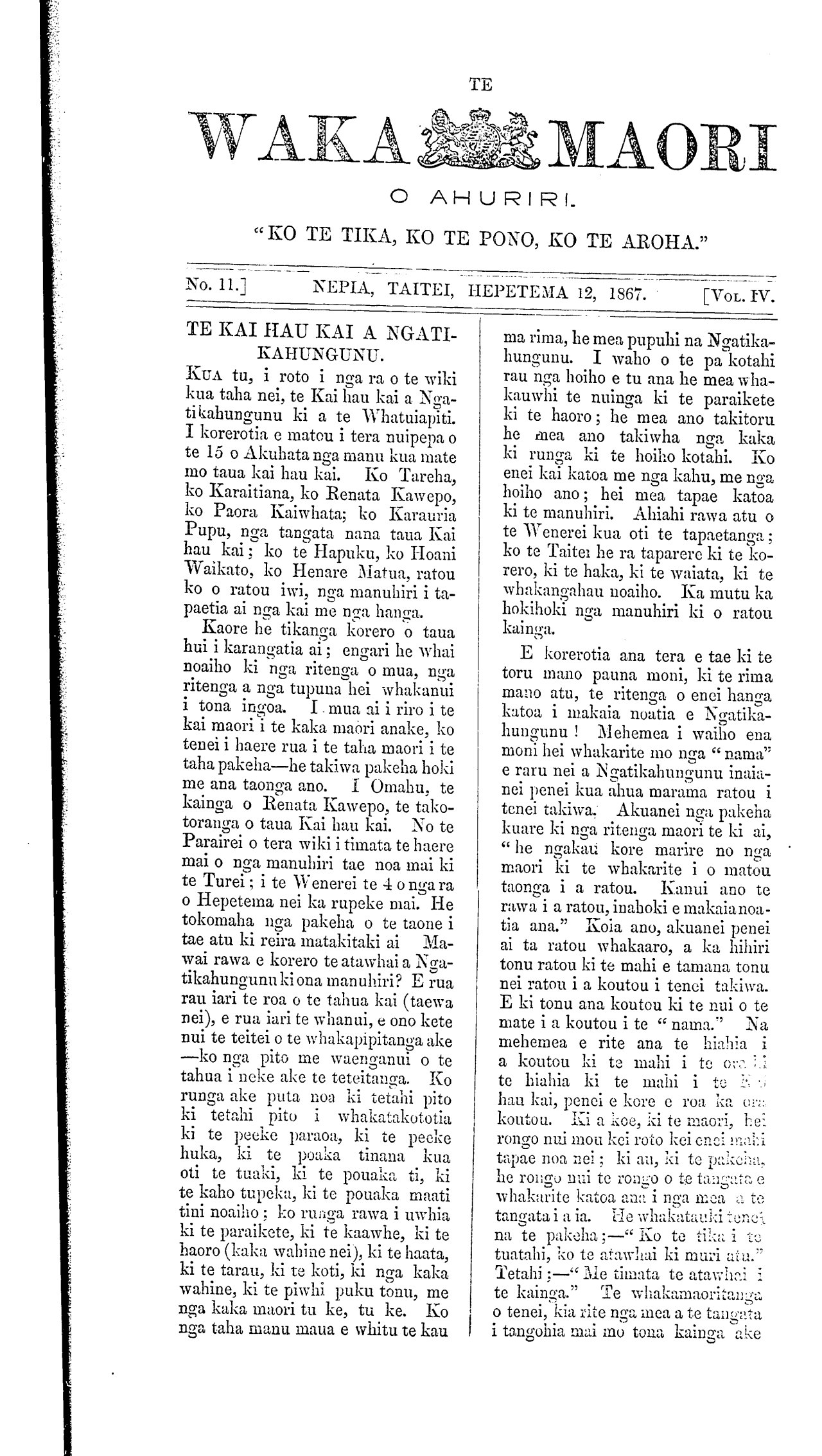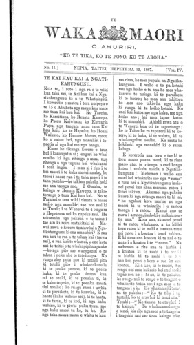 Te Waka Maori o Ahuriri 1863-1871: Volume 4, Number 11. 12 September 1867 |