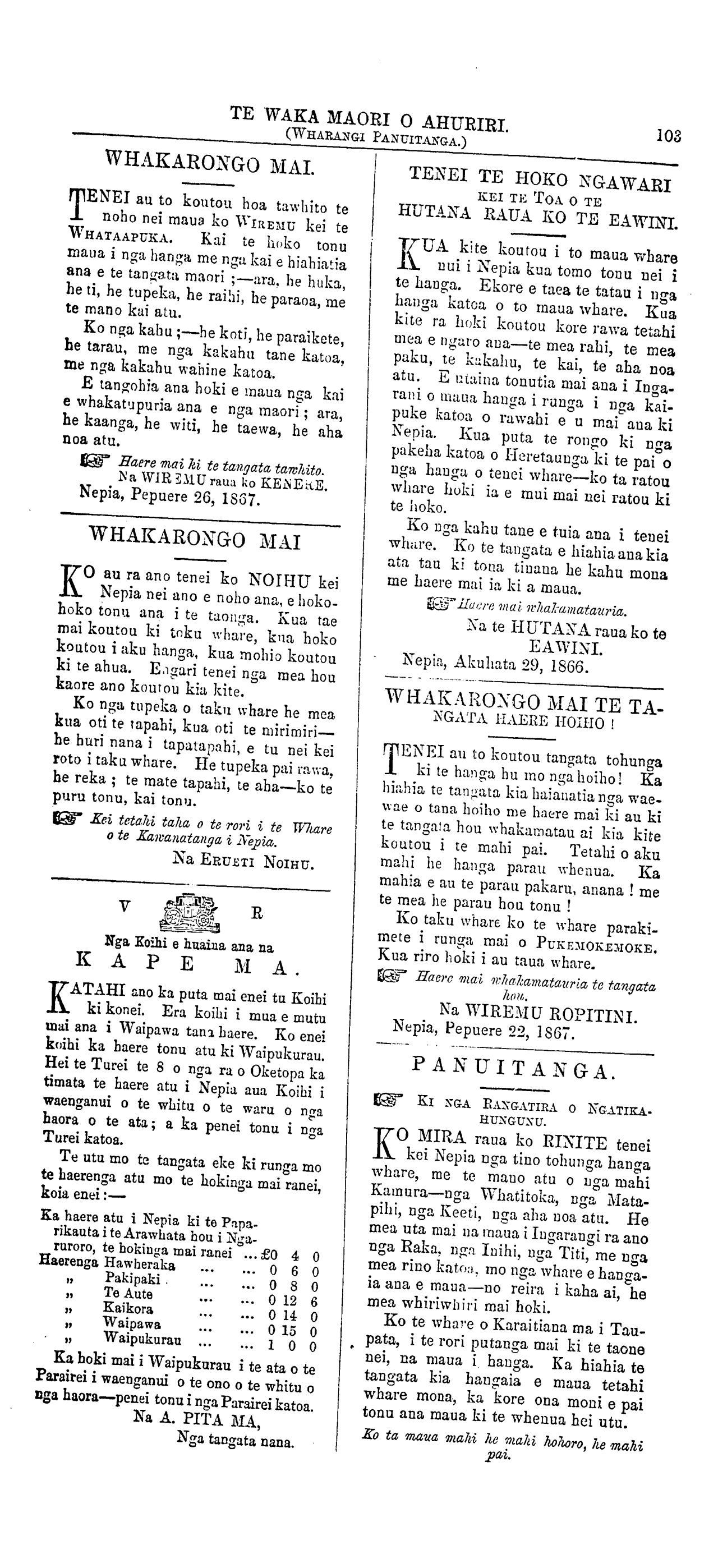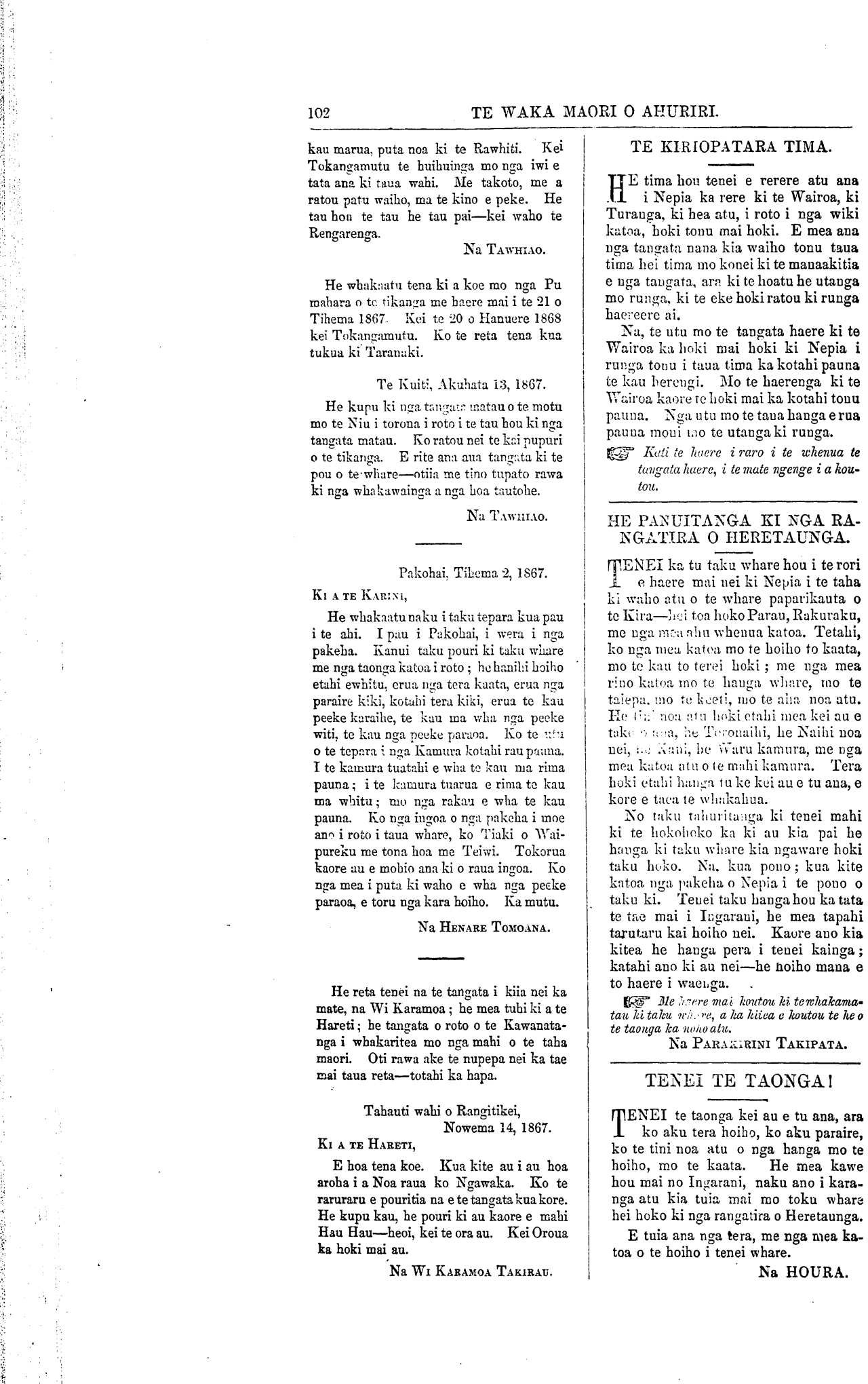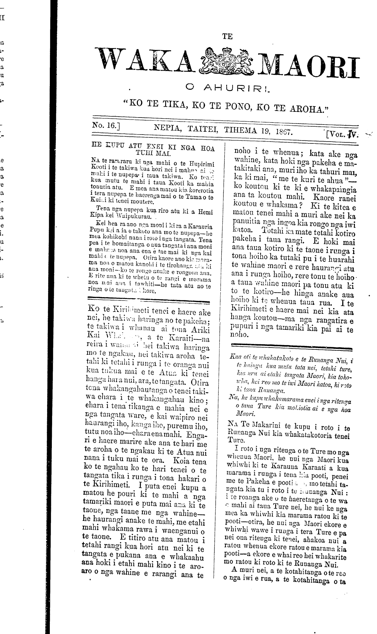 Te Waka Maori o Ahuriri 1863-1871: Volume 4, Number 16. 19 December 1867 |