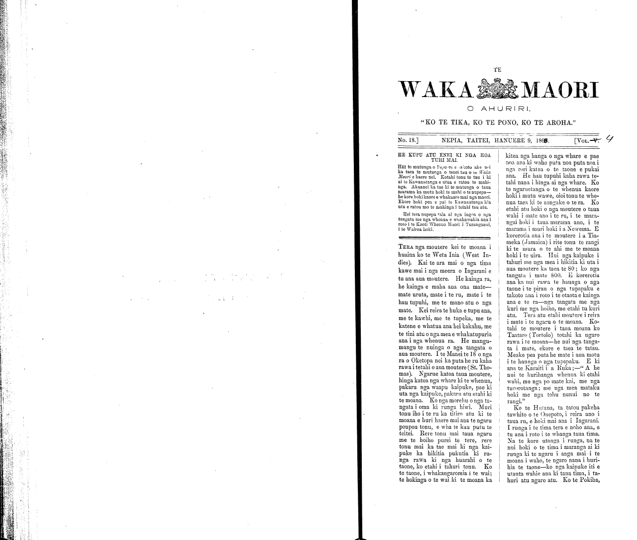 Te Waka Maori o Ahuriri 1863-1871: Volume 4, Number 18. 09 January 1868 |