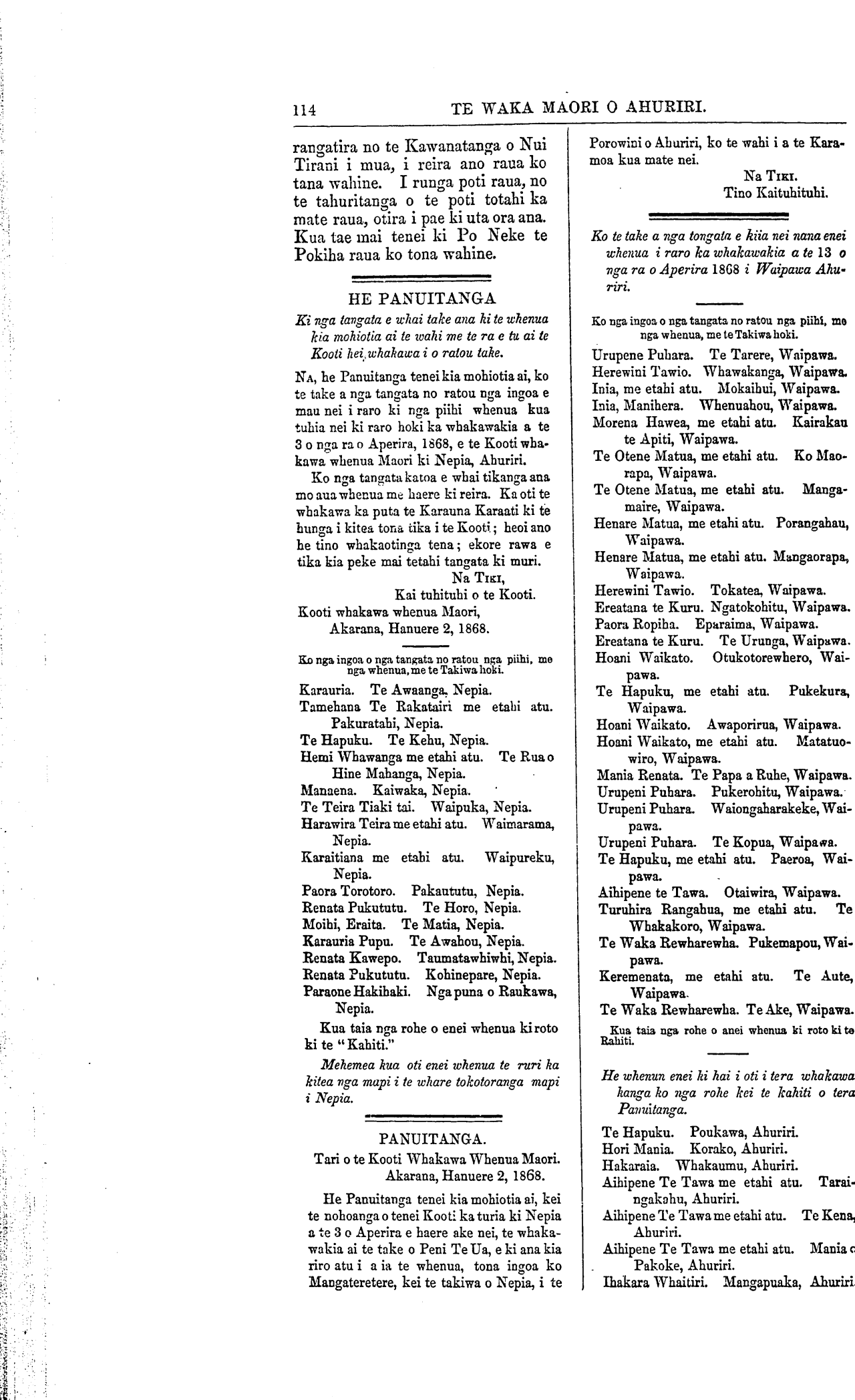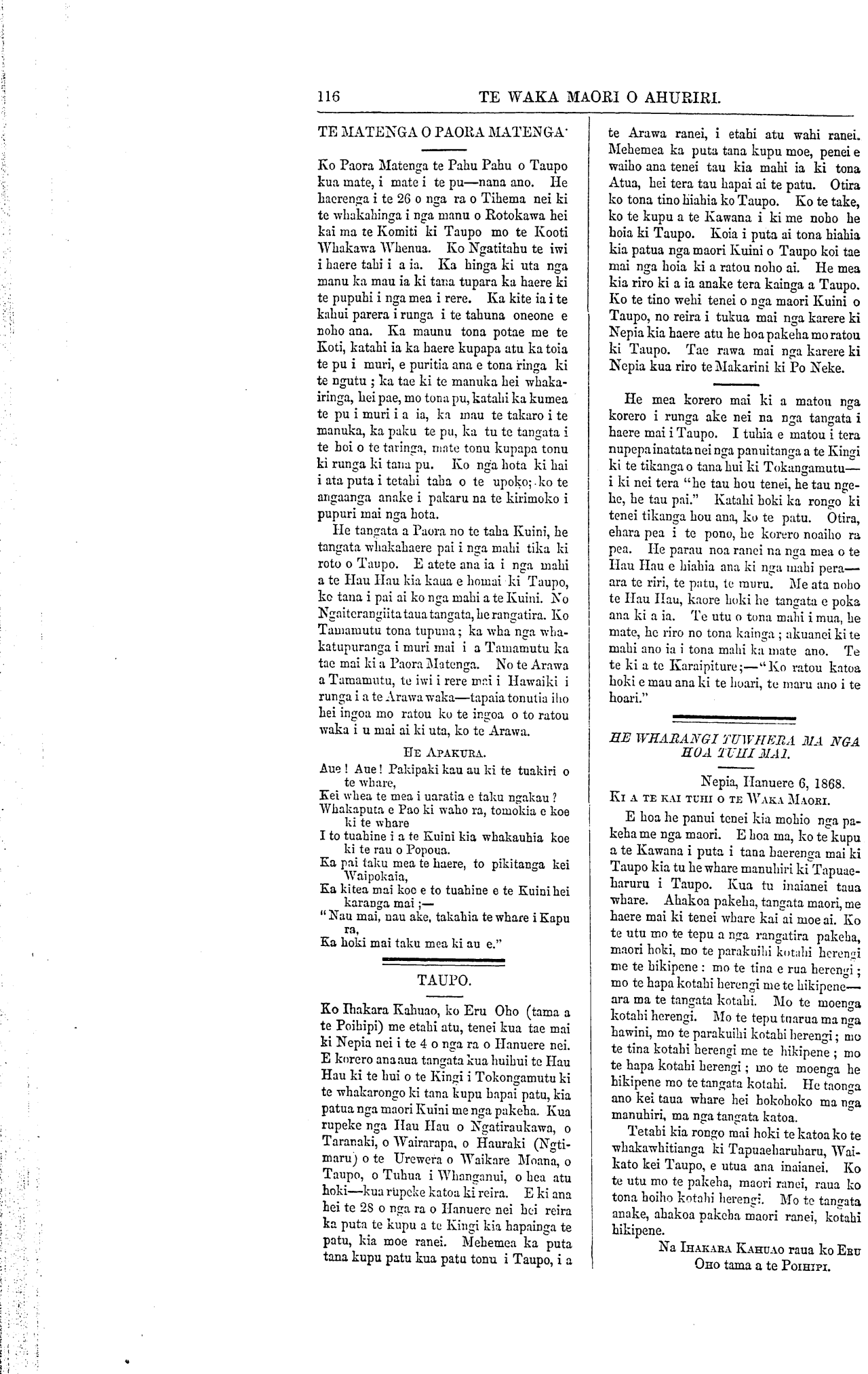ra o Hanuere 1867 i Nepia, te-
