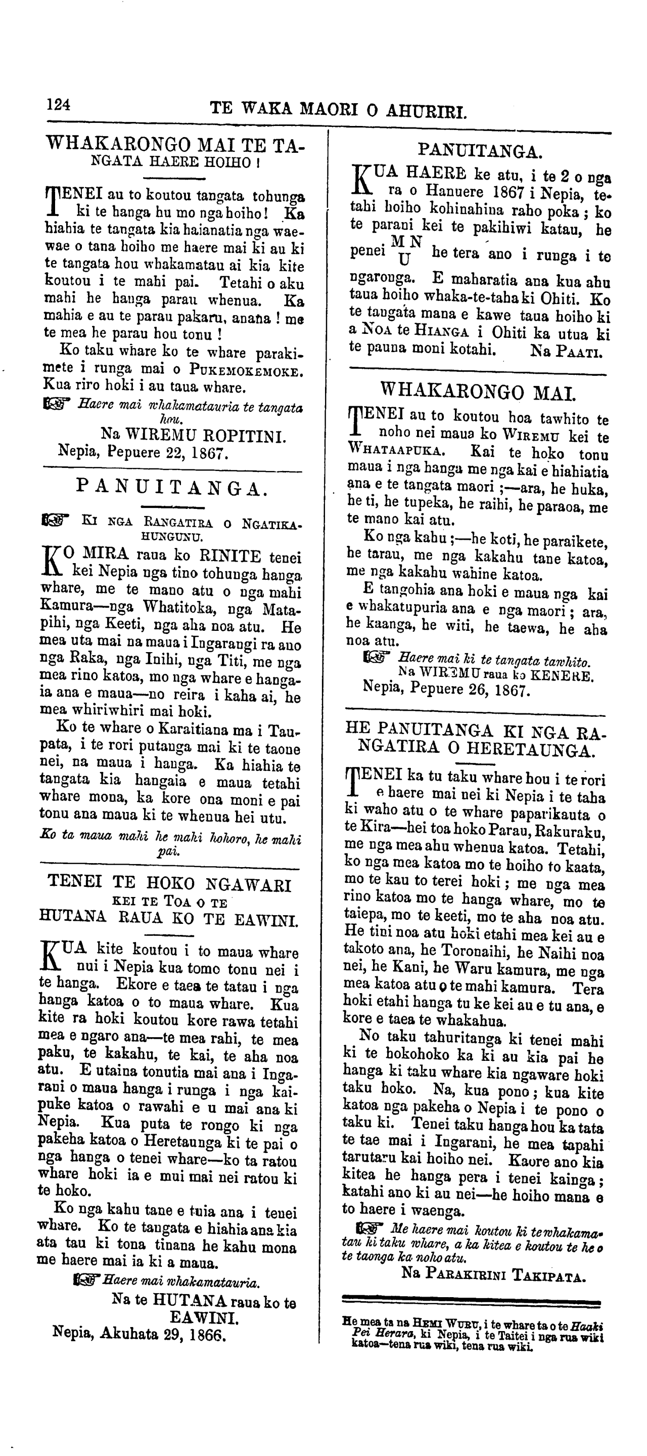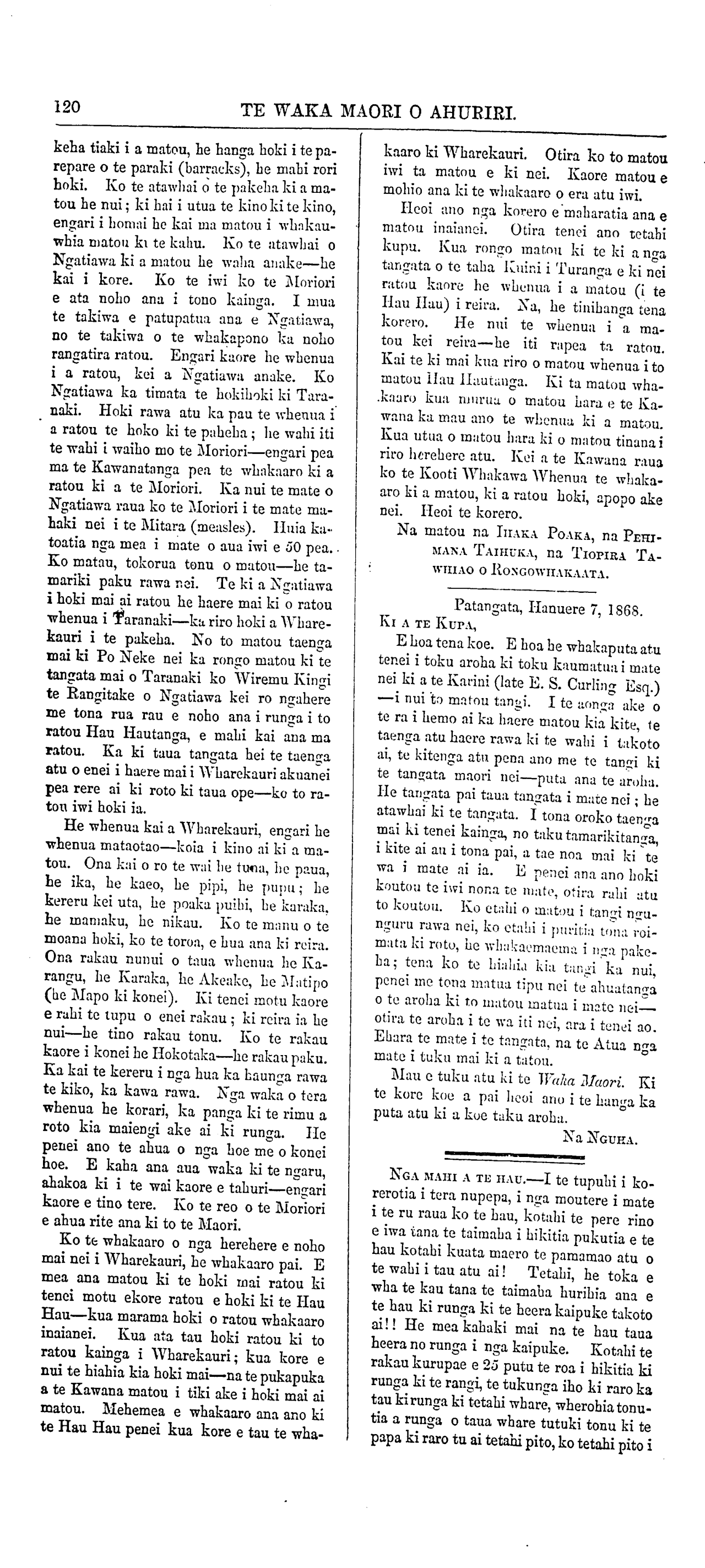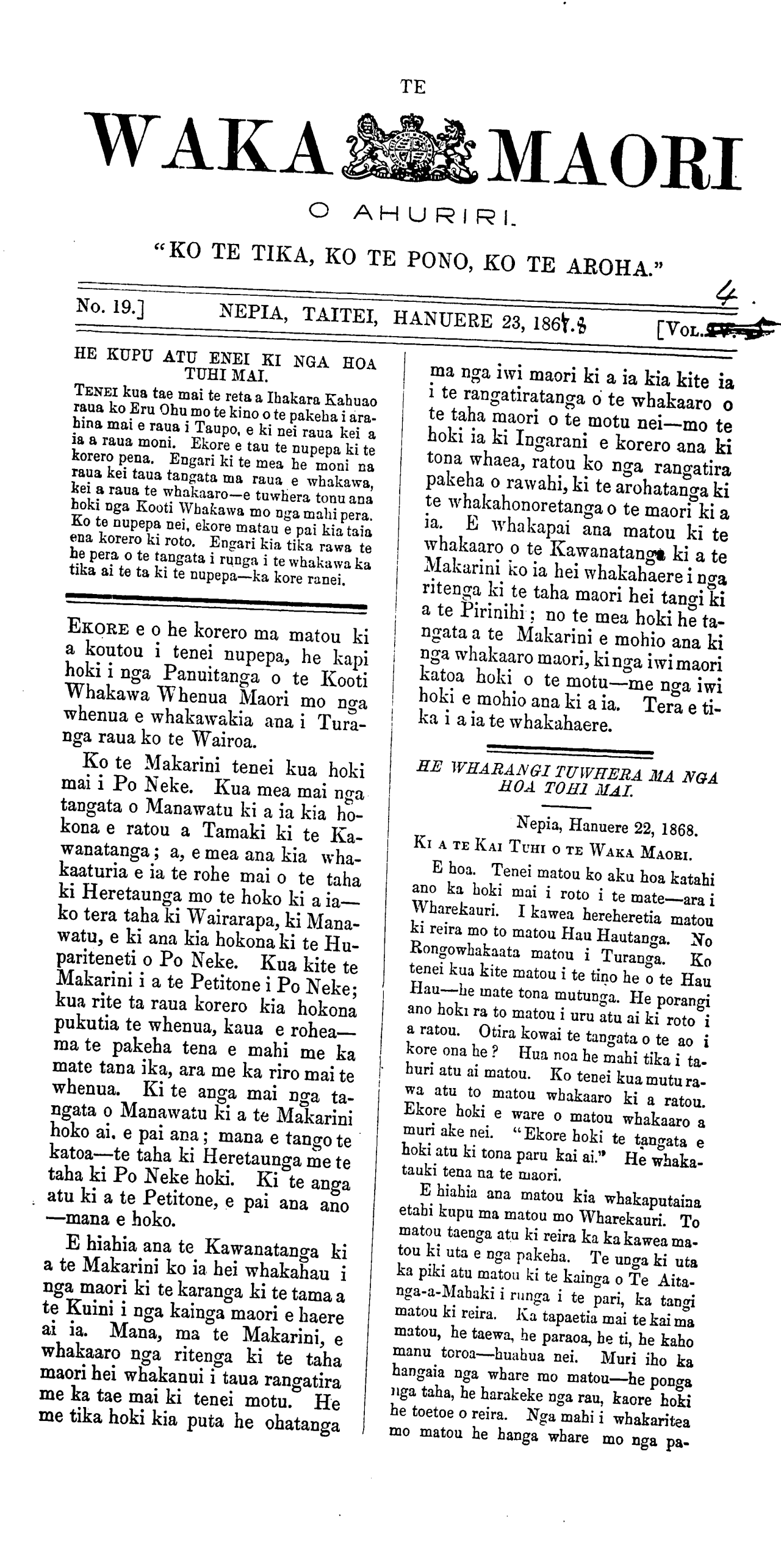 Te Waka Maori o Ahuriri 1863-1871: Volume 4, Number 19. 23 January 1868 |