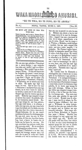 Te Waka Maori o Ahuriri 1863-1871: Volume 4, Number 4. 06 June 1867 |