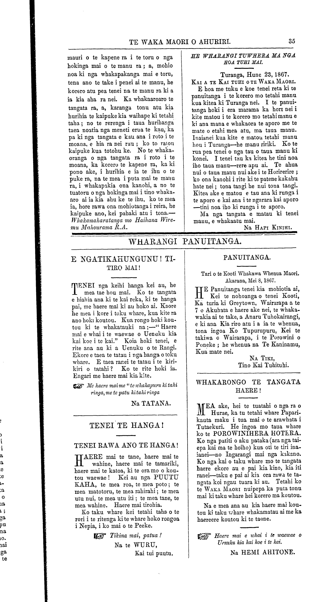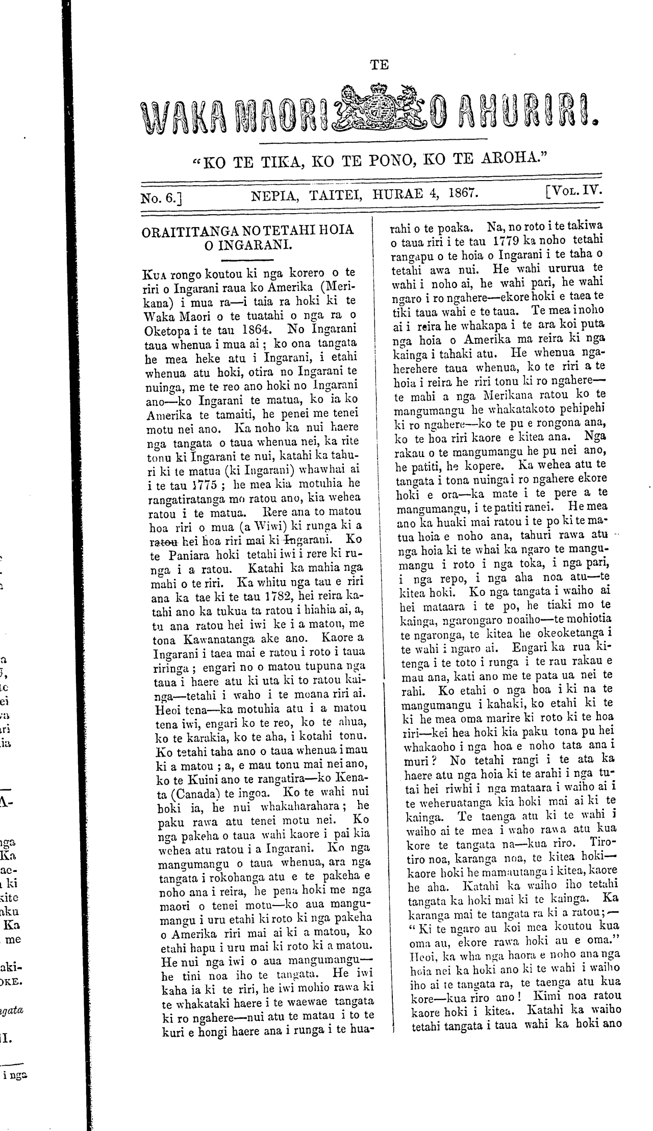 Te Waka Maori o Ahuriri 1863-1871: Volume 4, Number 6. 04 July 1867 |
