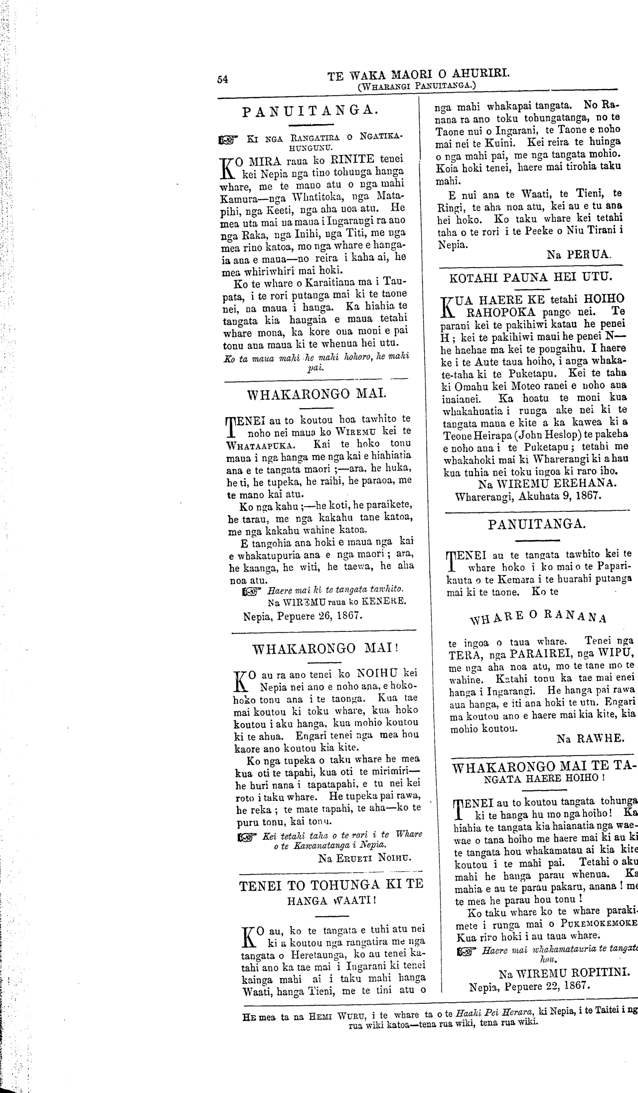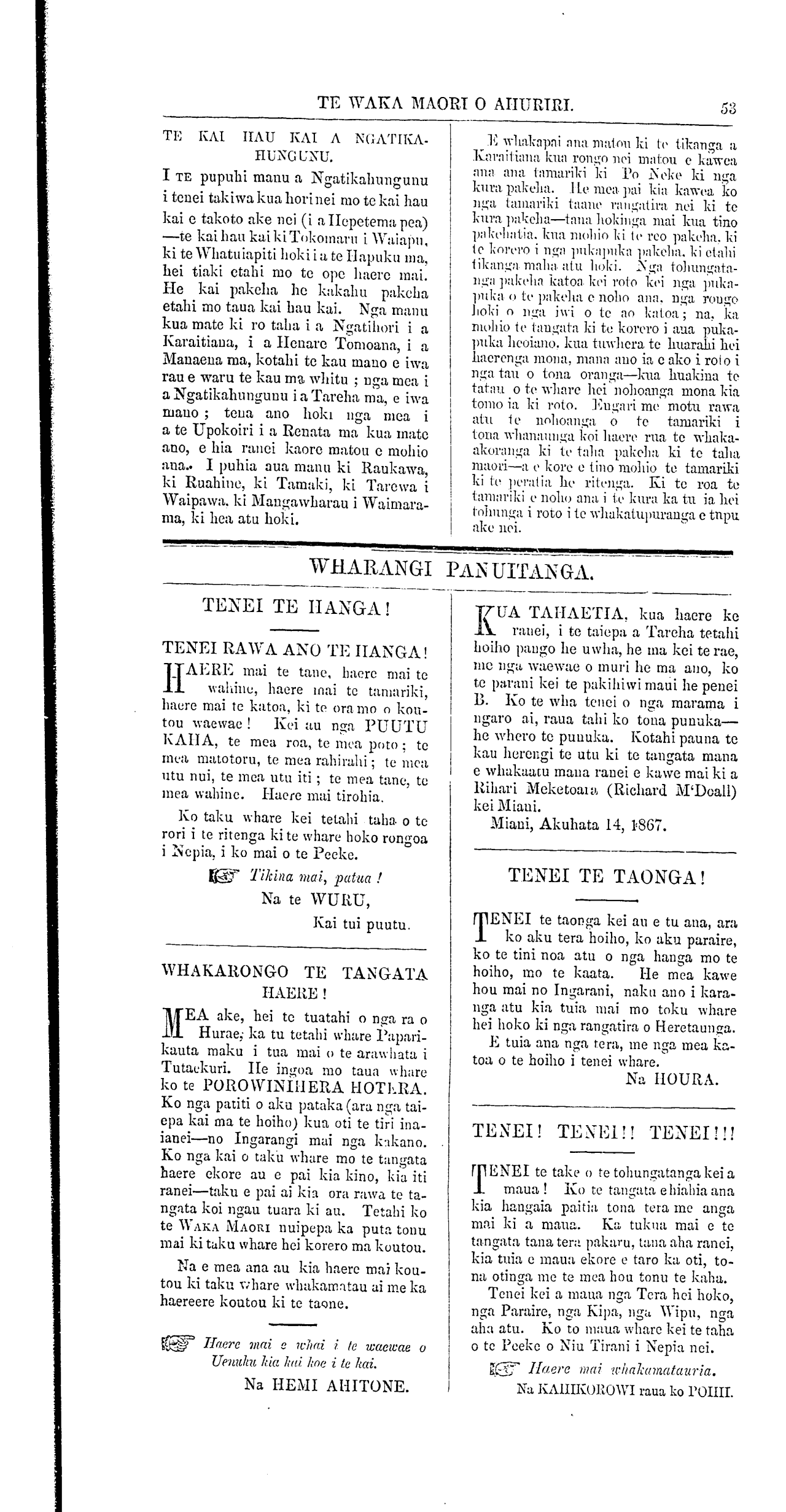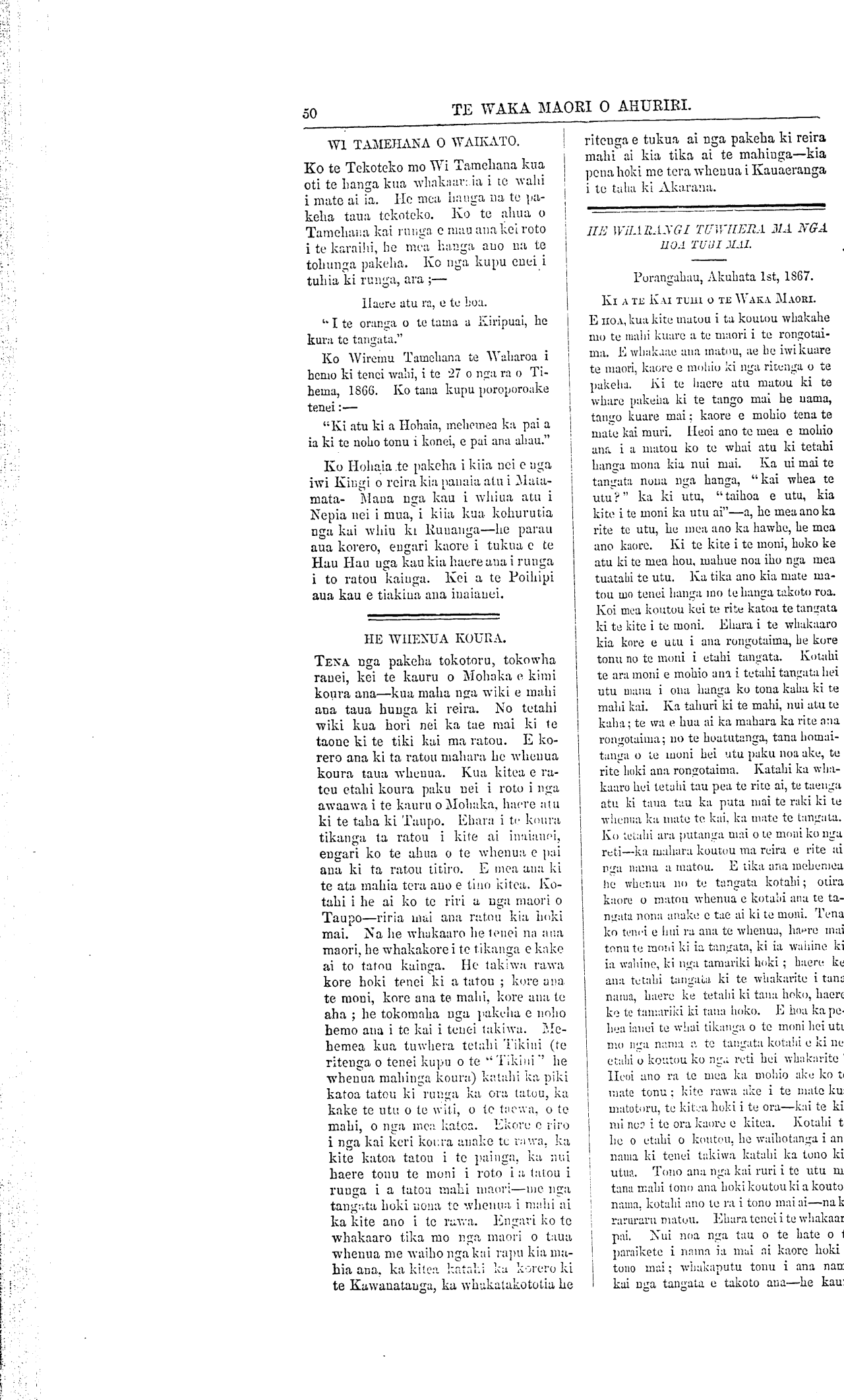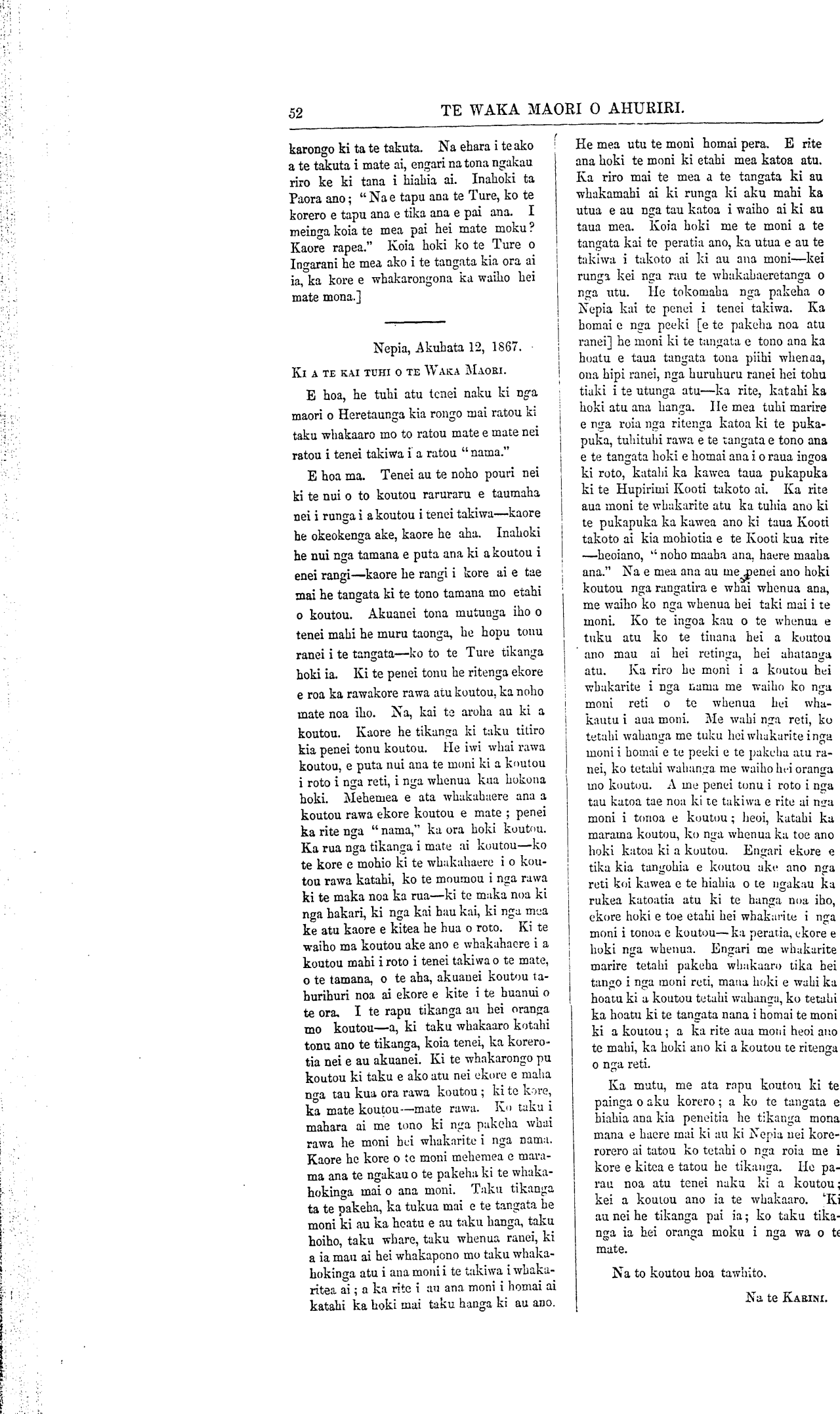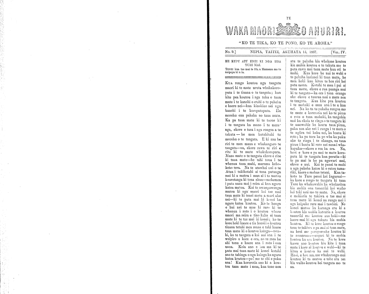 Te Waka Maori o Ahuriri 1863-1871: Volume 4, Number 9. 15 August 1867 |