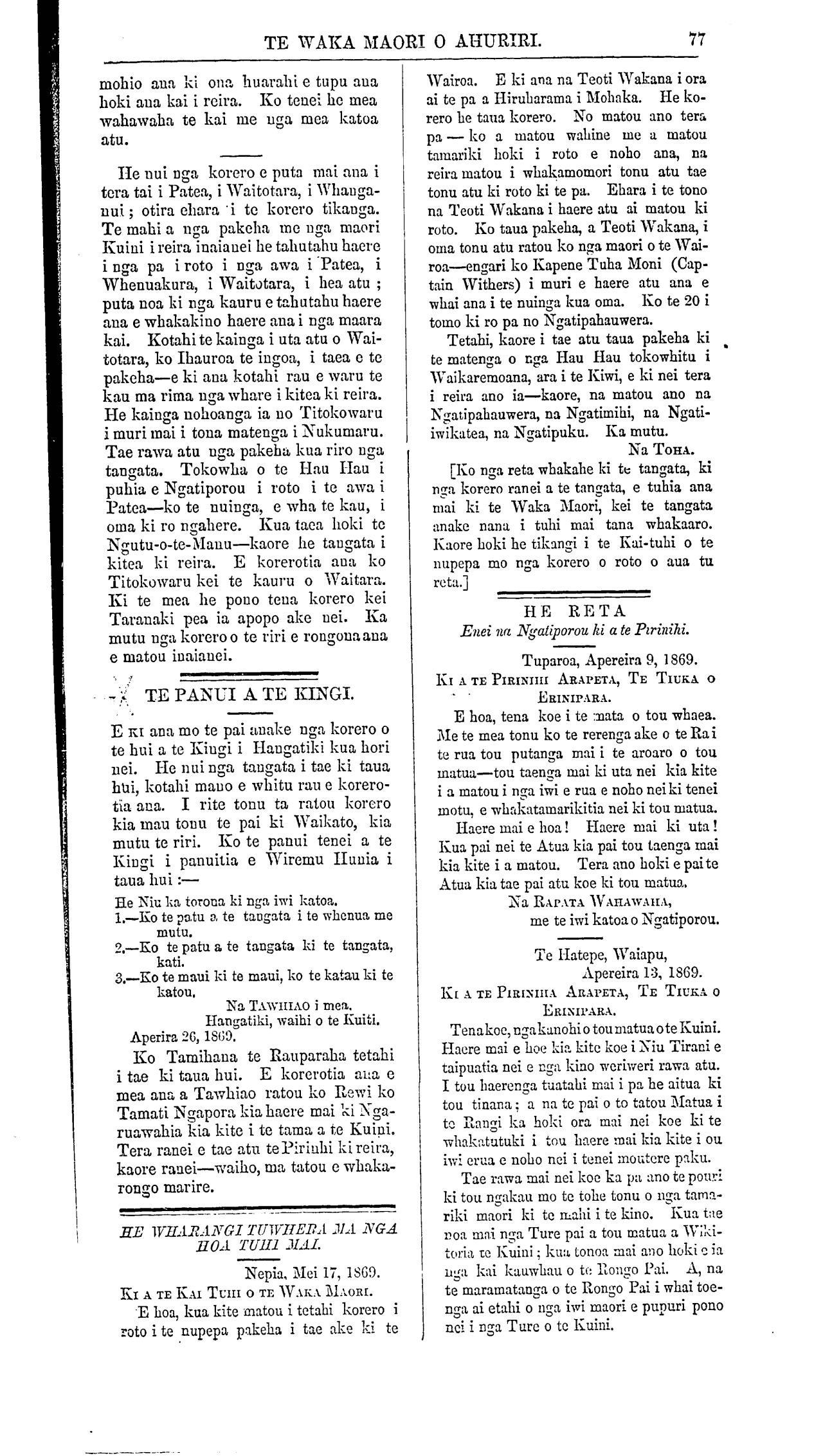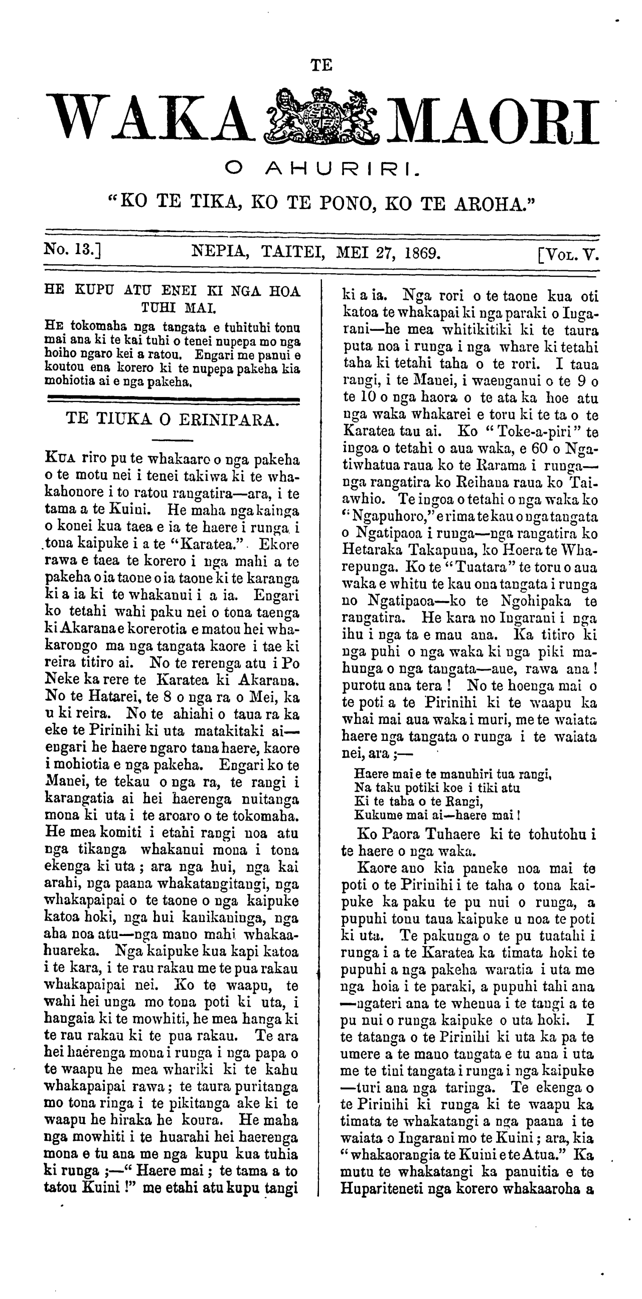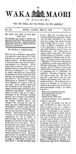 Te Waka Maori o Ahuriri 1863-1871: Volume 5, Number 13. 27 May 1869 |