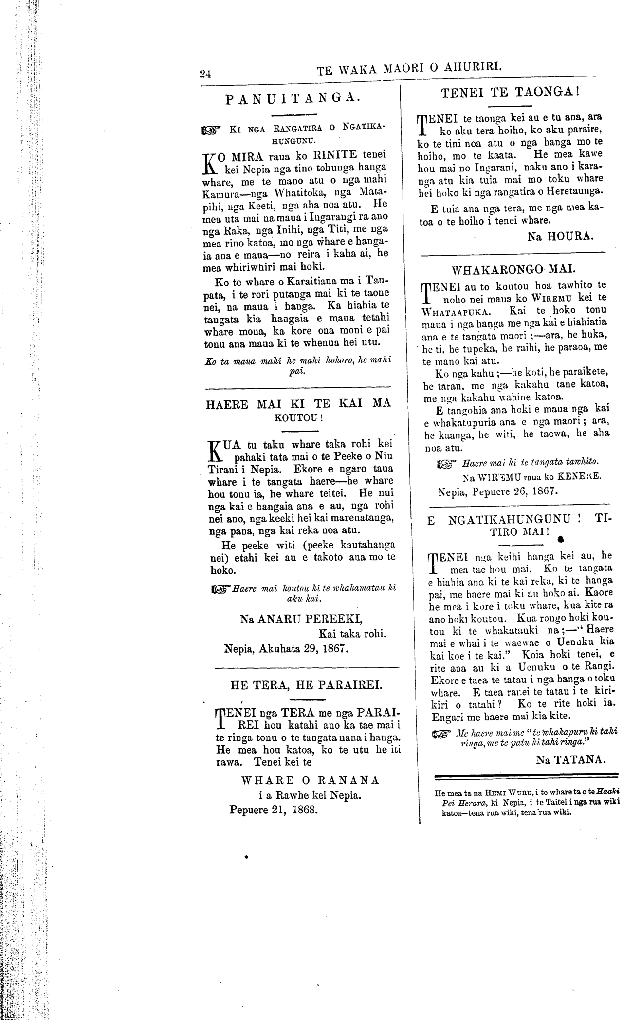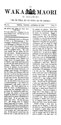 Te Waka Maori o Ahuriri 1863-1871: Volume 5, Number 4. 23 April 1868 |