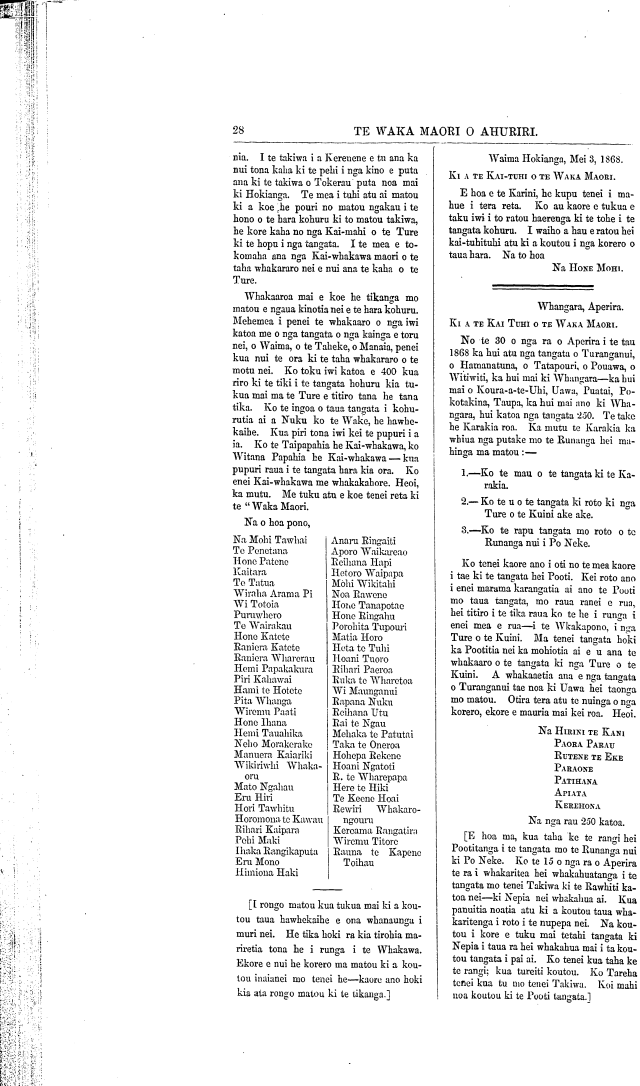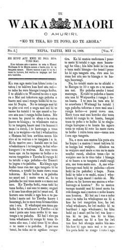 Te Waka Maori o Ahuriri 1863-1871: Volume 5, Number 5. 14 May 1868 |
