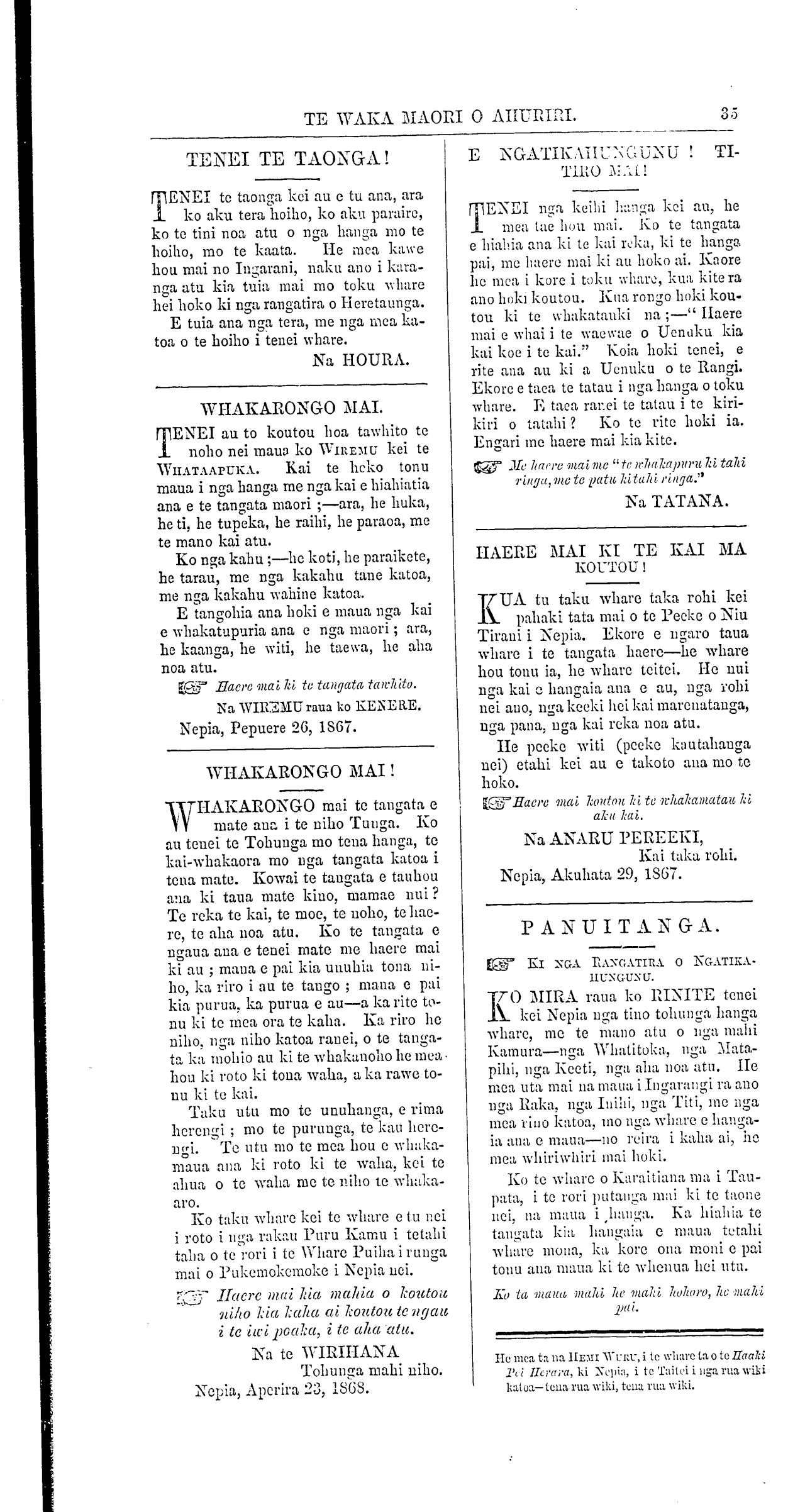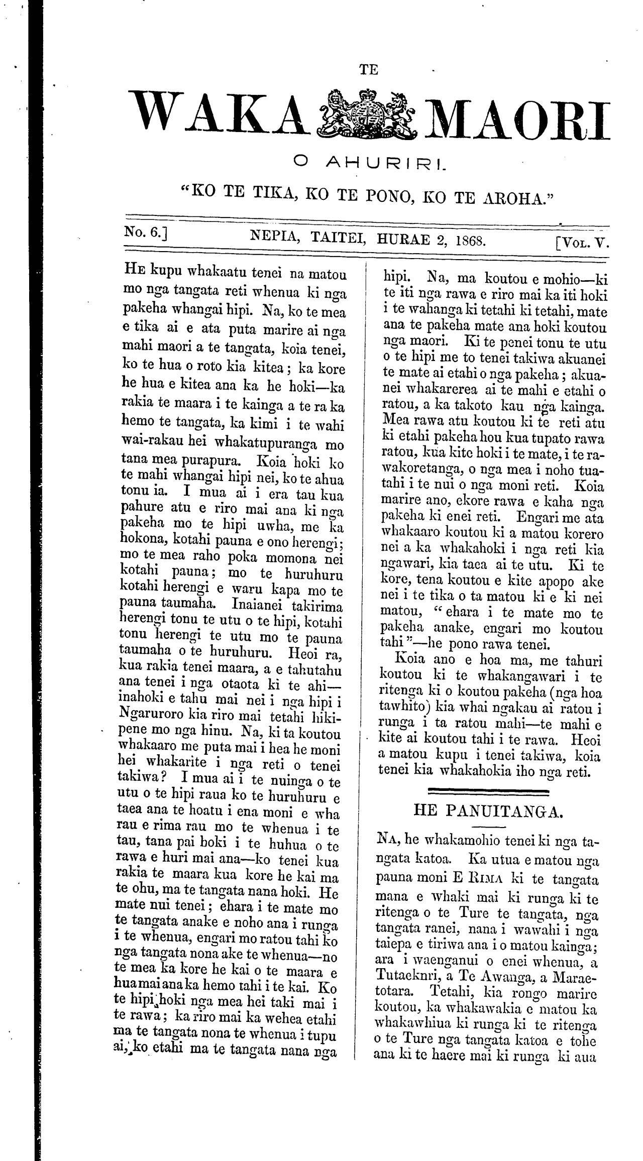 Te Waka Maori o Ahuriri 1863-1871: Volume 5, Number 6. 02 July 1868 |