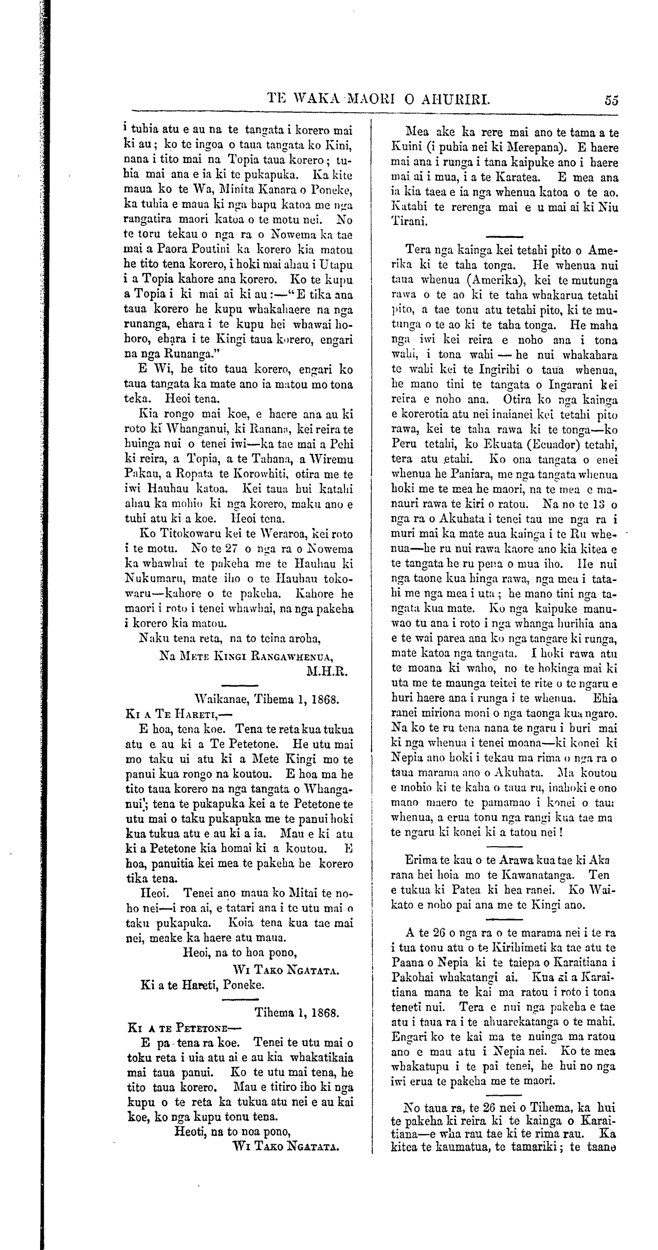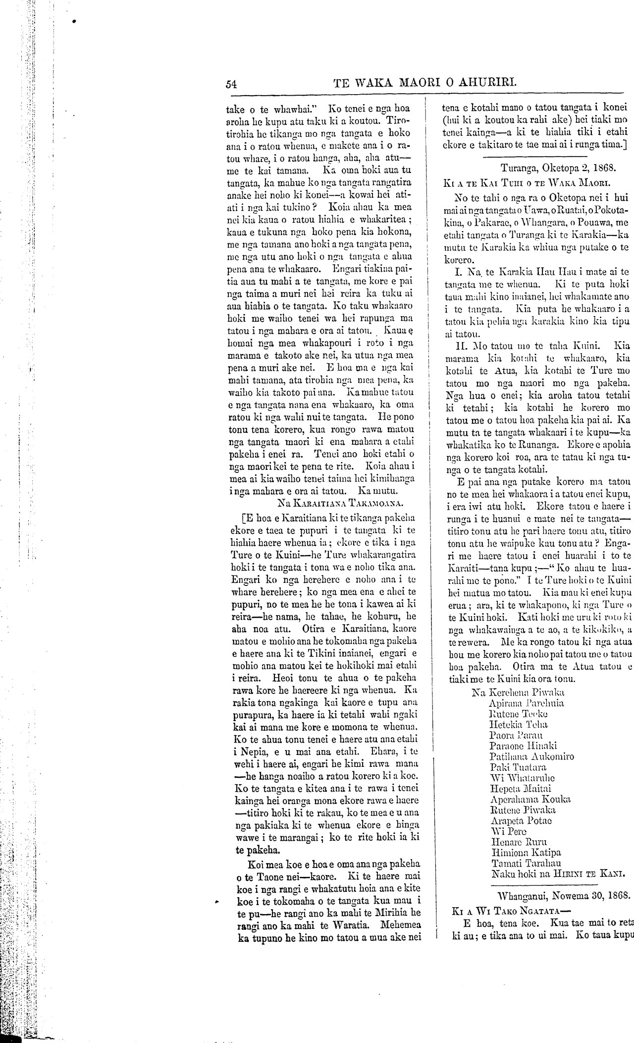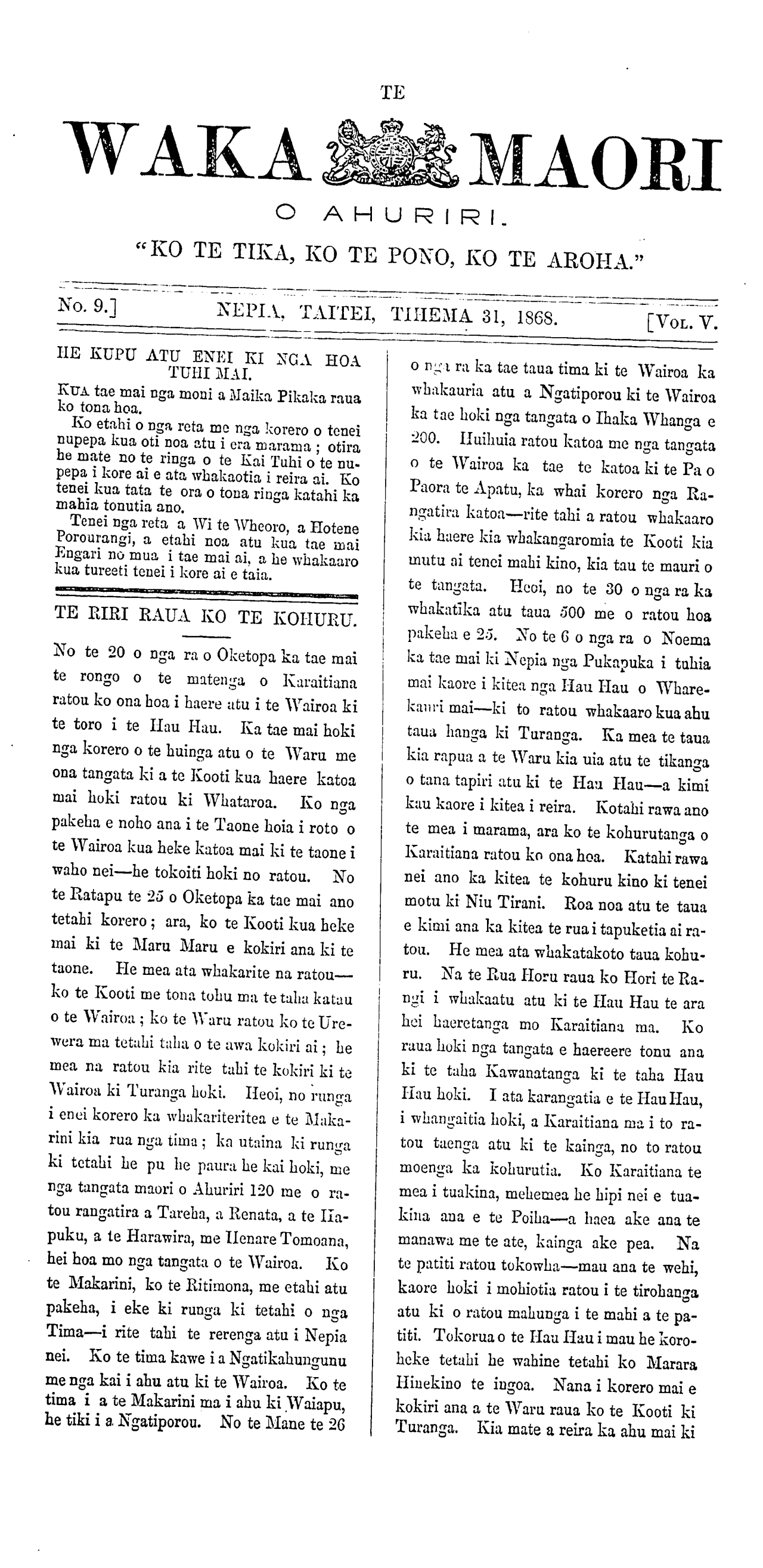 Te Waka Maori o Ahuriri 1863-1871: Volume 5, Number 9. 31 December 1868